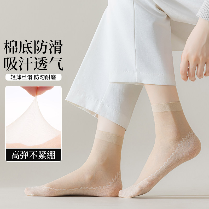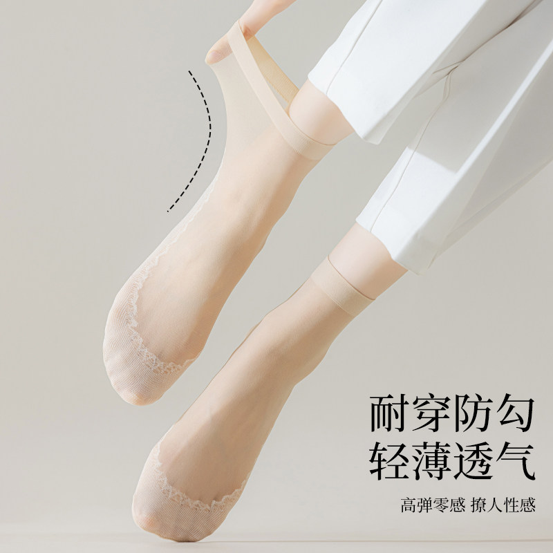 袜子女春夏季钢丝薄款透明纯棉底浅口玻璃冰丝袜水晶蕾丝花边短袜