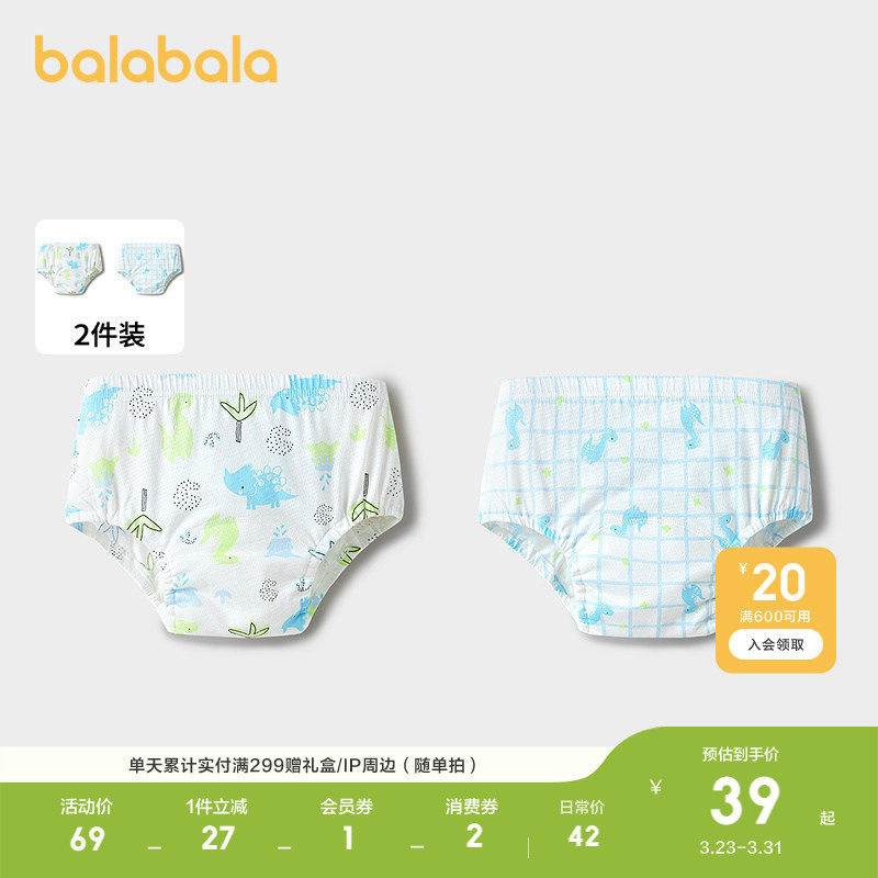 巴拉巴拉宝宝如厕训练裤棉男女童三角短裤婴儿内裤戒尿不湿两条装