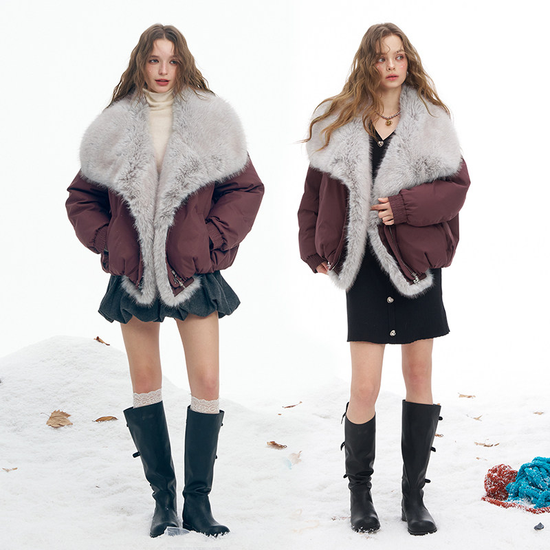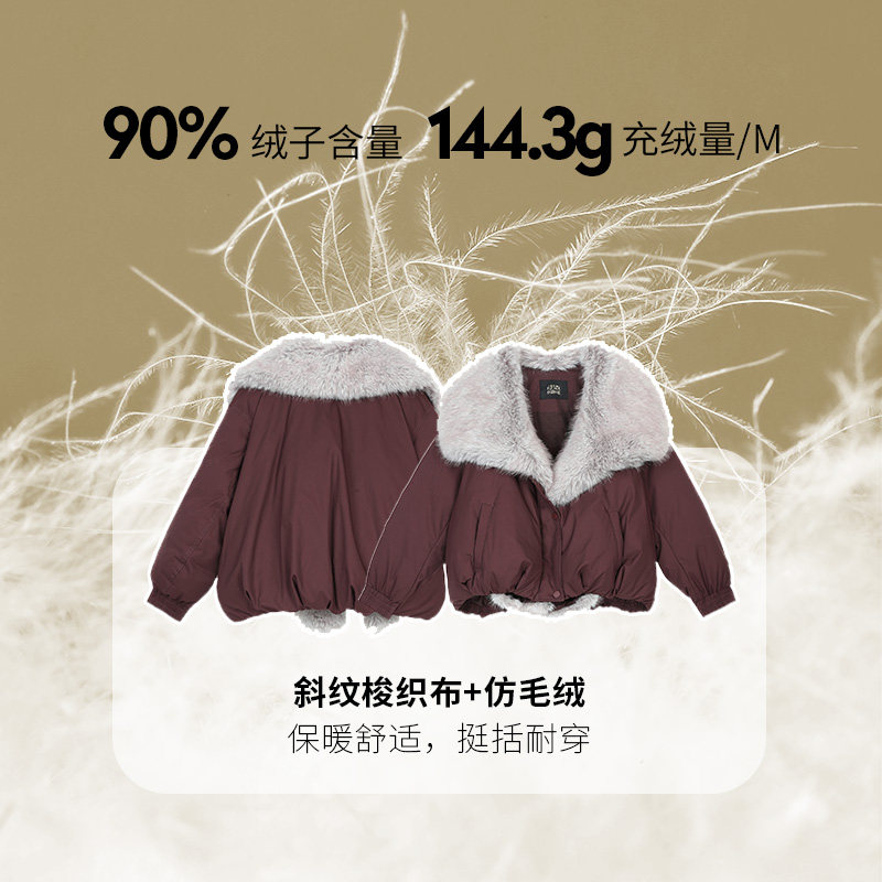 妖精的口袋大毛领翻领短款羽绒服女2025年冬季新款保暖加厚外套