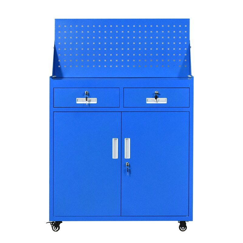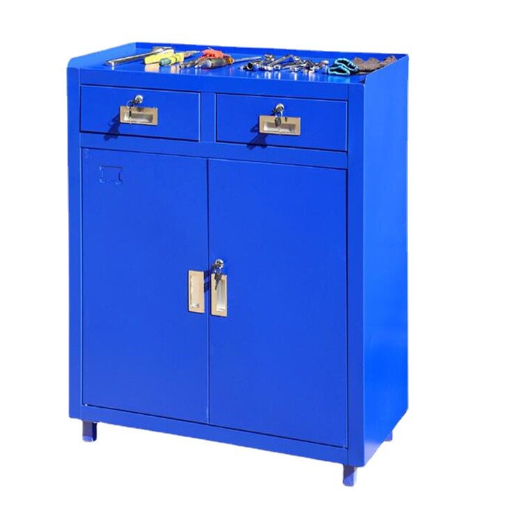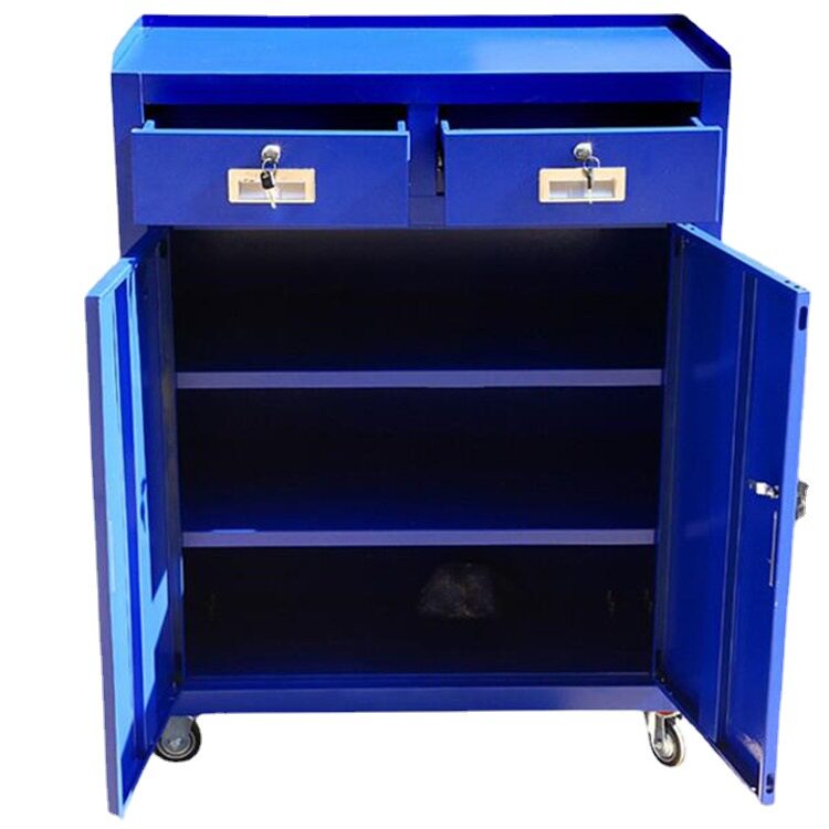 加厚二斗双门工具柜汽车维修车间工位车带抽屉工具车铁皮工具台