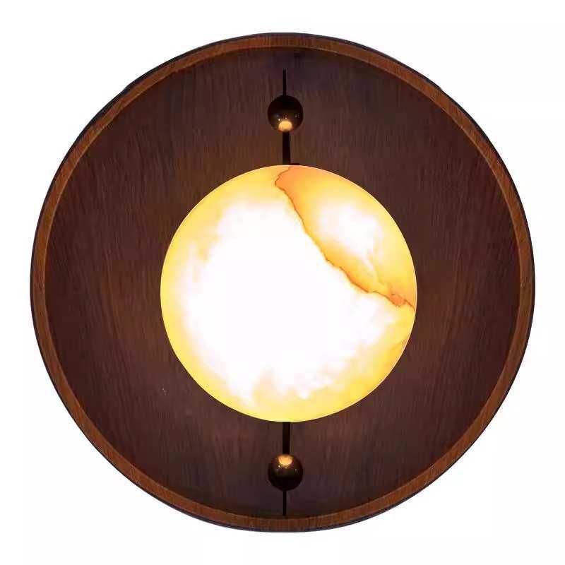 新款中复古胡桃木纹云石壁灯设计师客厅卧室装饰壁灯酒店床头壁灯