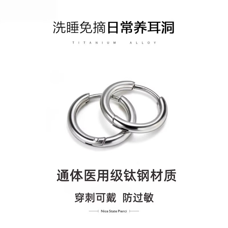 F136通体钛钢素圈耳环养耳防过敏圆形闭口环耳骨环穿刺饰品耳洞