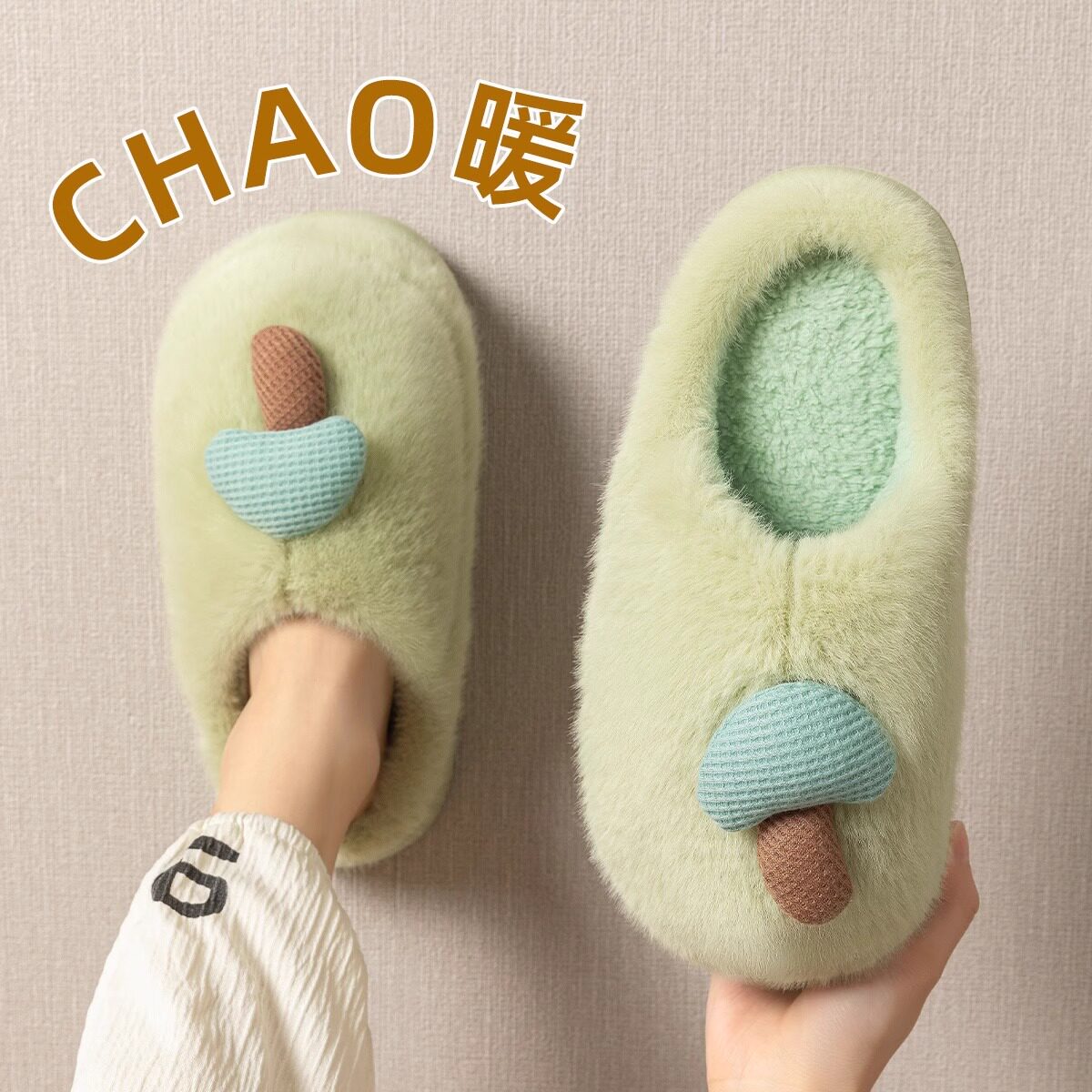 2026新款翻半包跟棉拖加绒保暖情侣外穿毛毛绒厚底防滑居家棉拖鞋