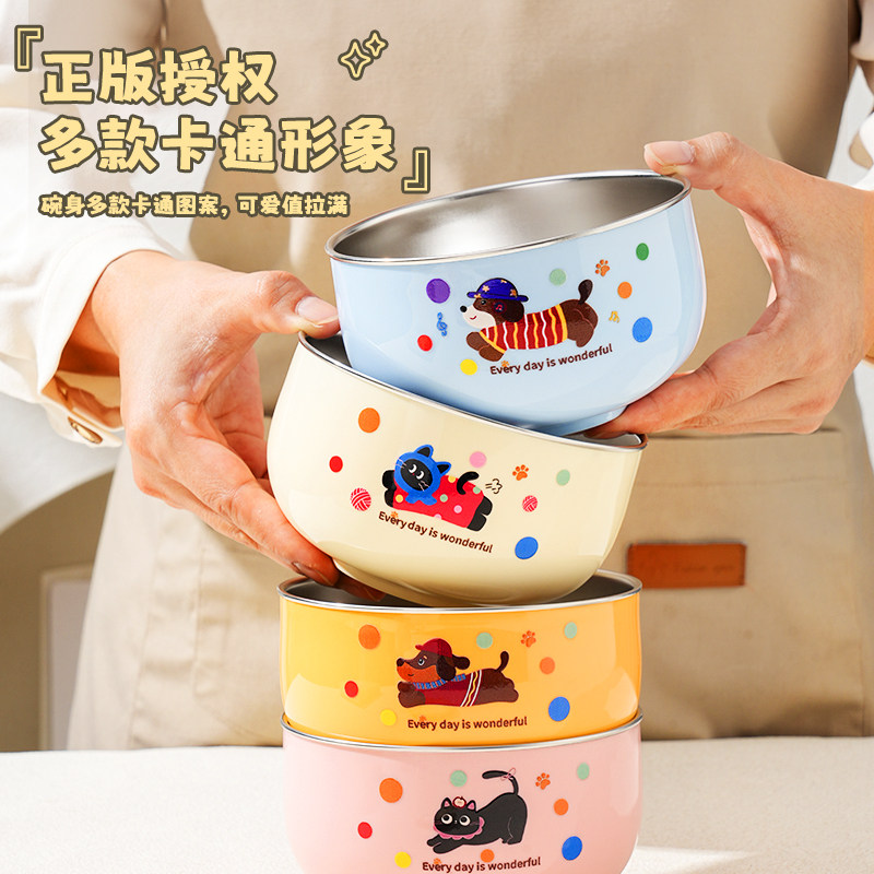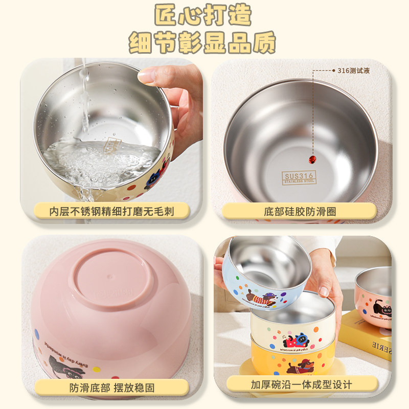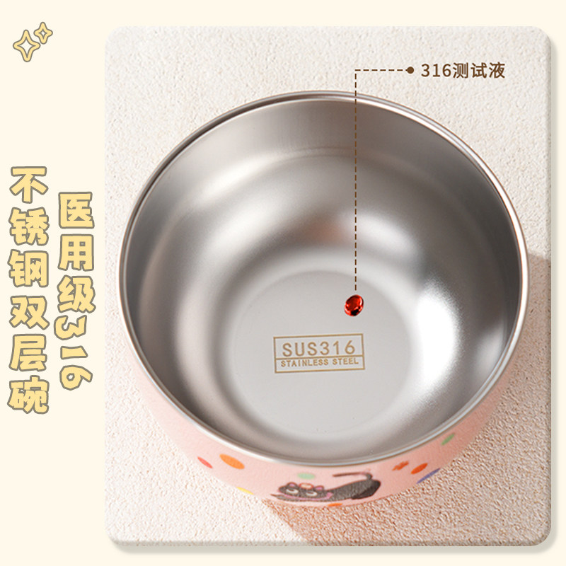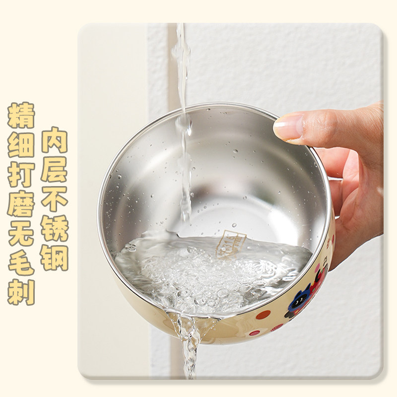 316不锈钢儿童碗家用宝宝辅食碗双层隔热防烫摔汤碗吃饭专用碗
