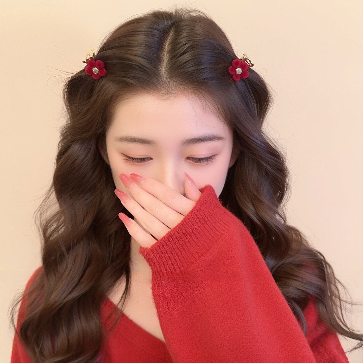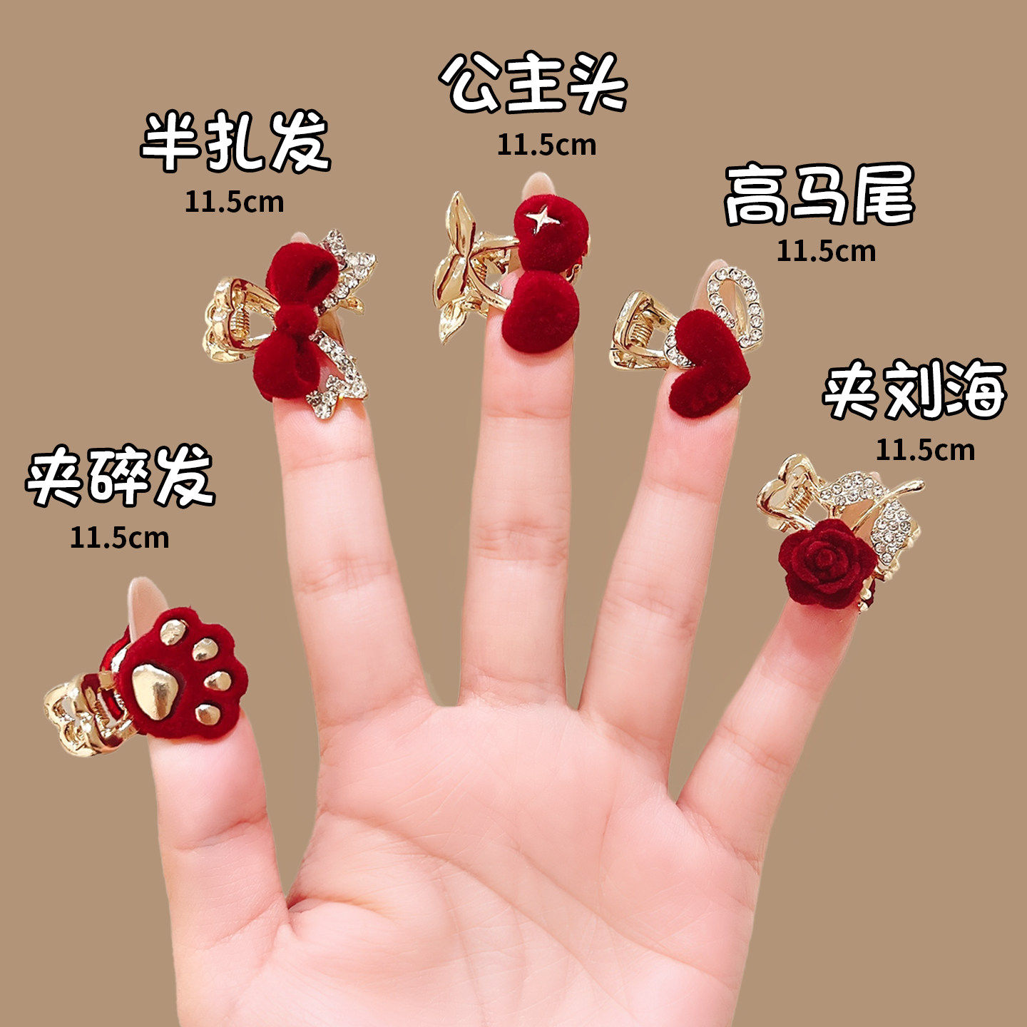 新年红色本命年发夹丝绒樱桃小抓夹女高级感前额刘海发卡过年头饰