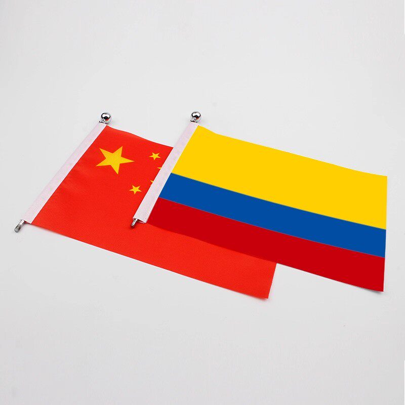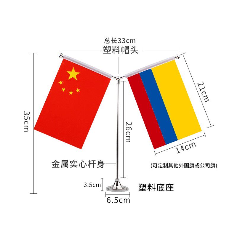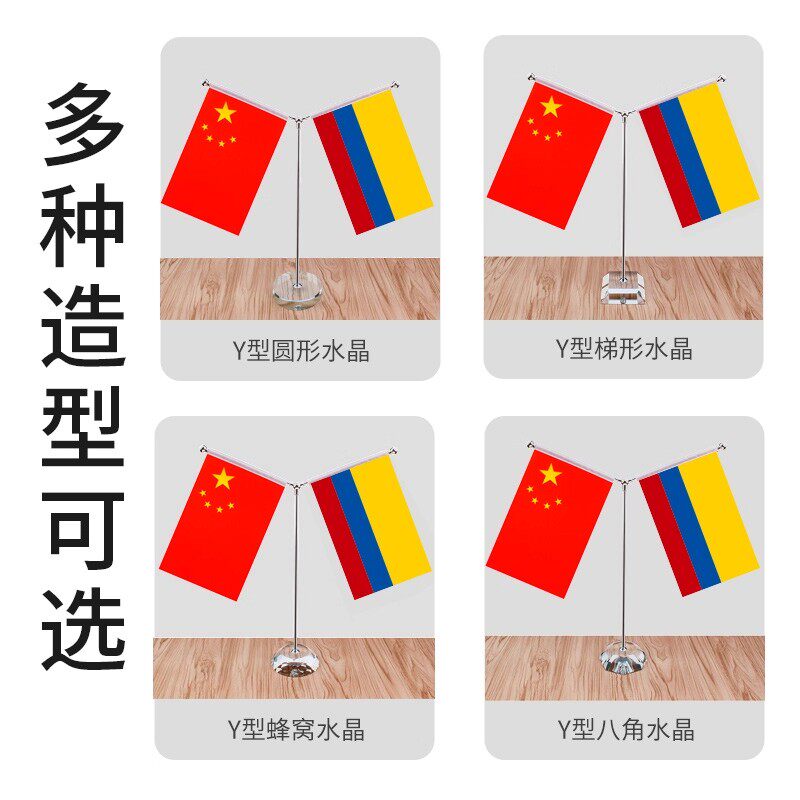 中国哥伦比亚桌旗国旗摆件谈判签字签约小红旗台装饰办公室面Y型