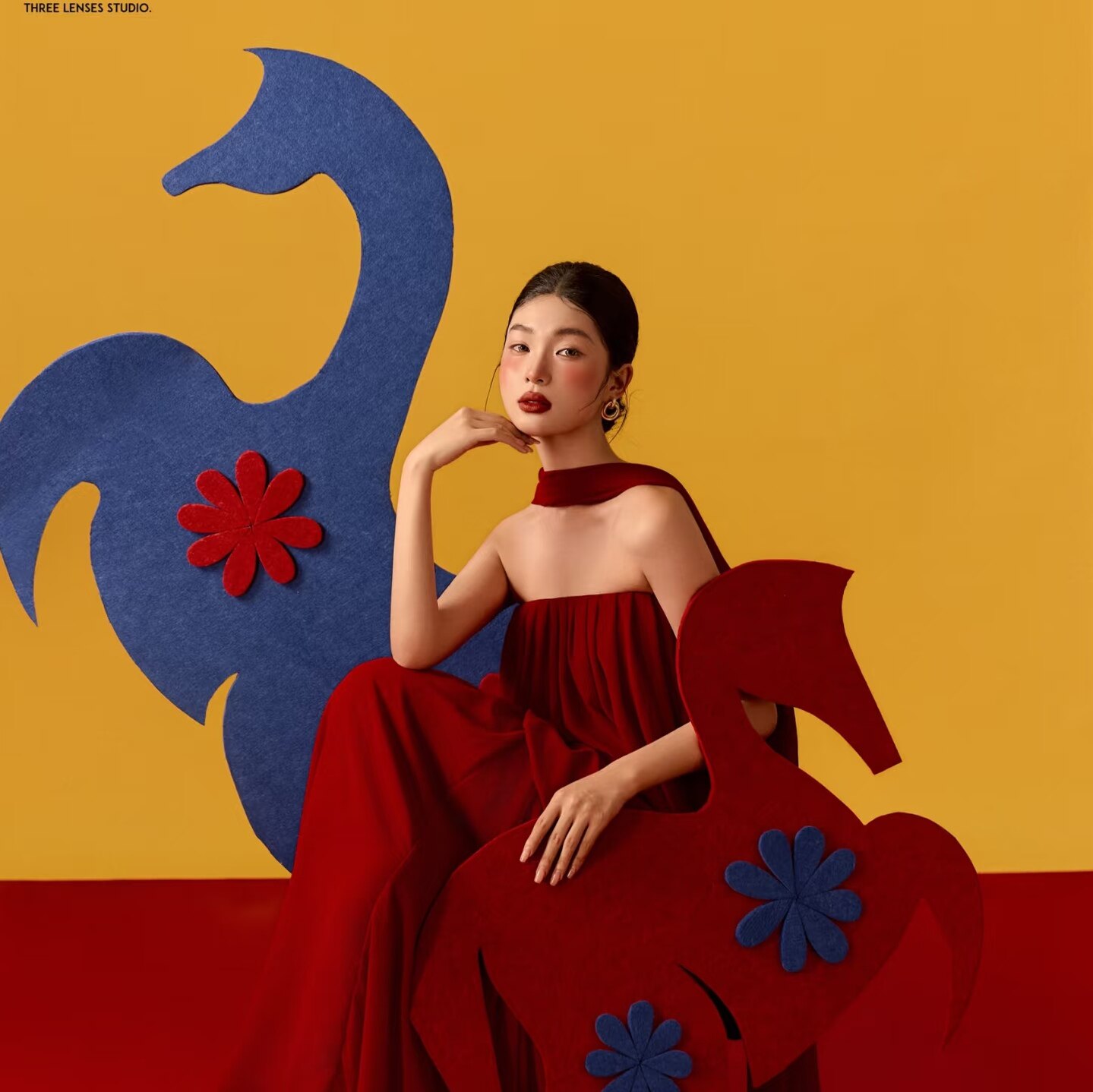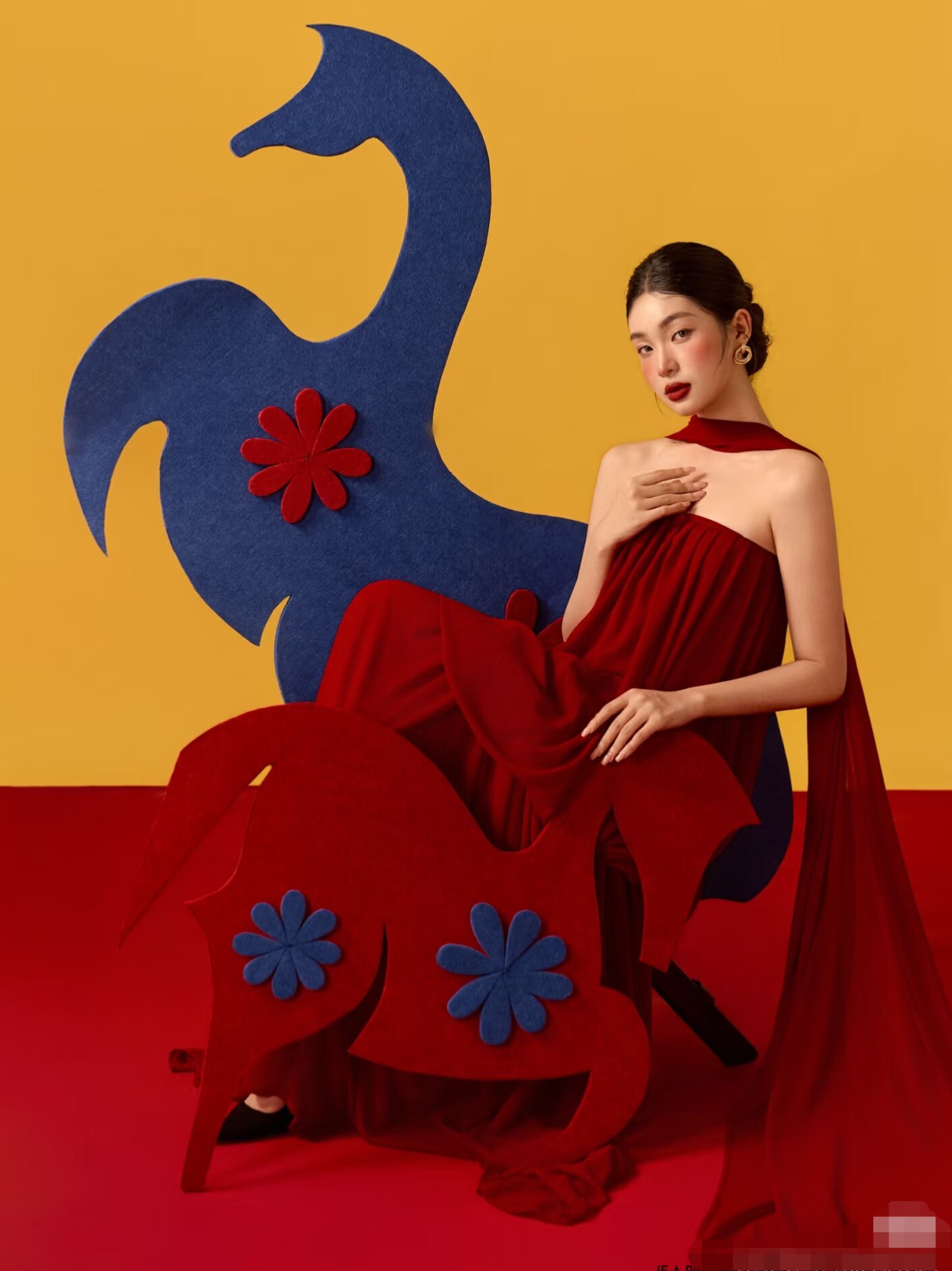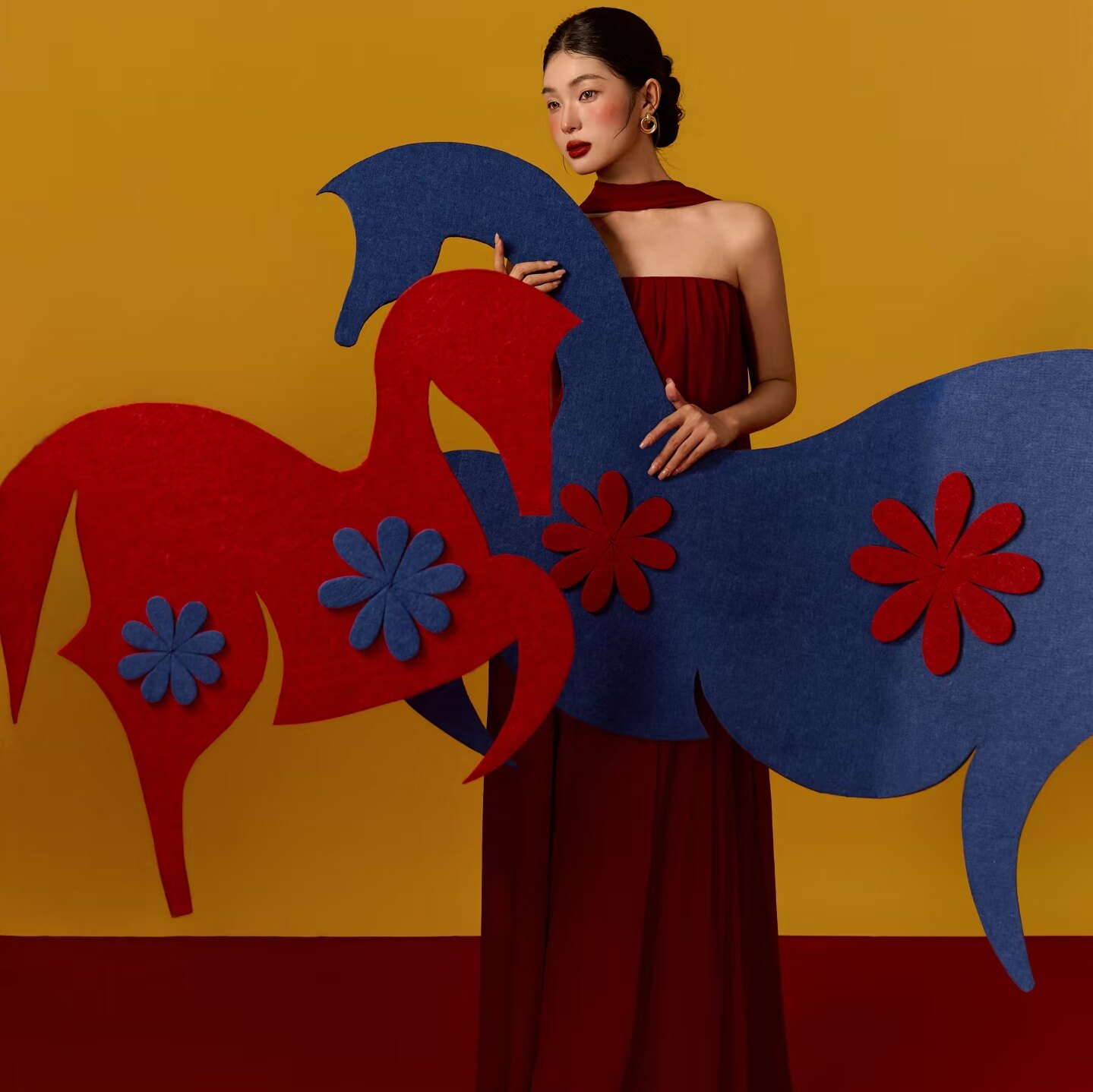 新年全家福儿童写真拍照道具加厚蓝色马板子婚纱照背景红马挂件