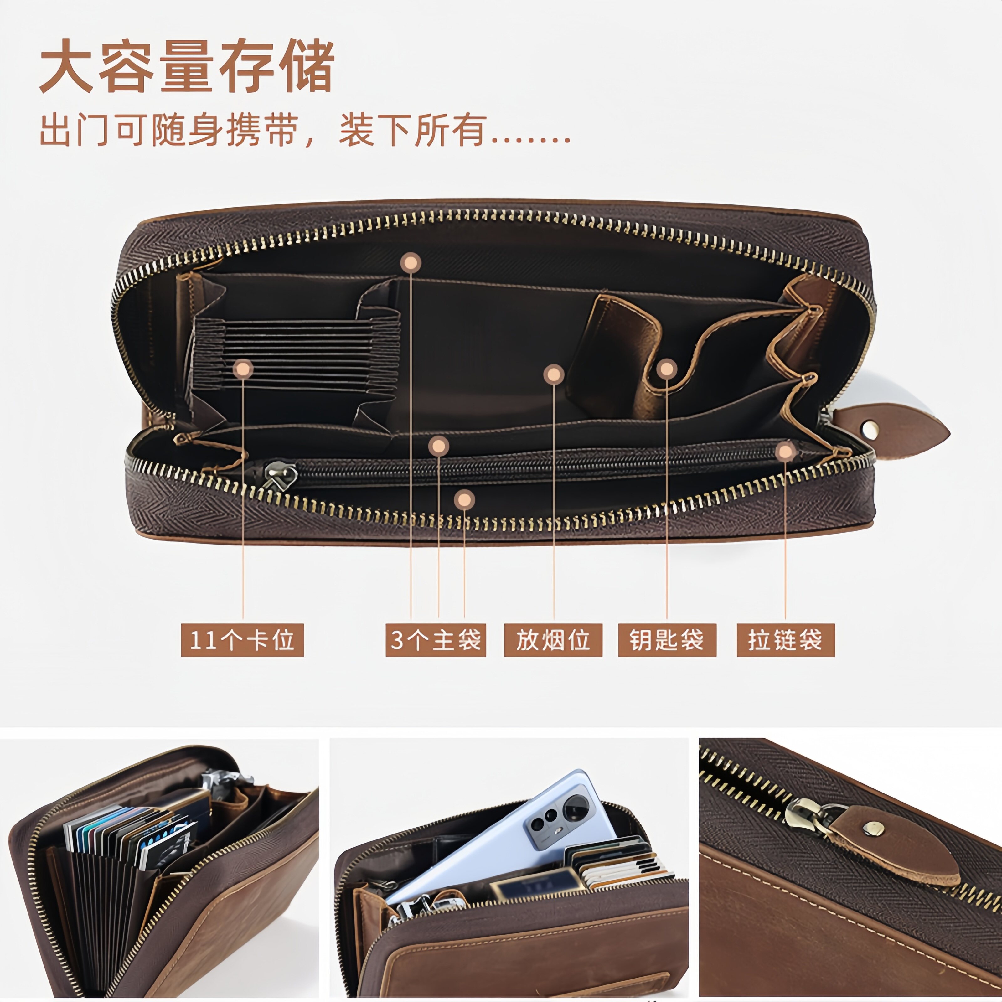 真皮男士手拿包手机包防盗刷消磁大容量收纳