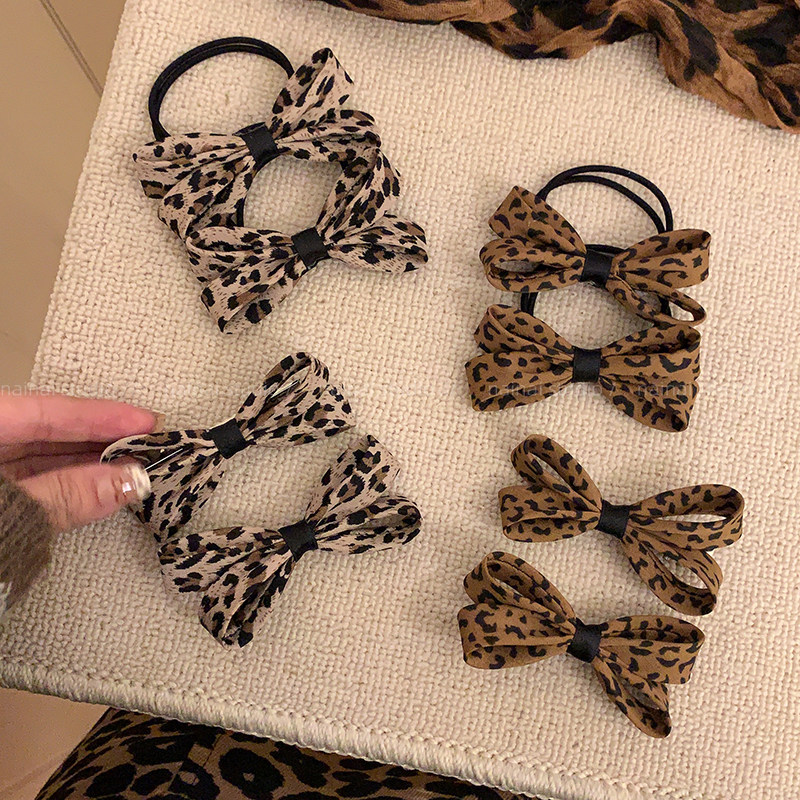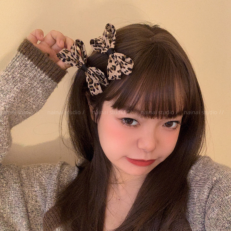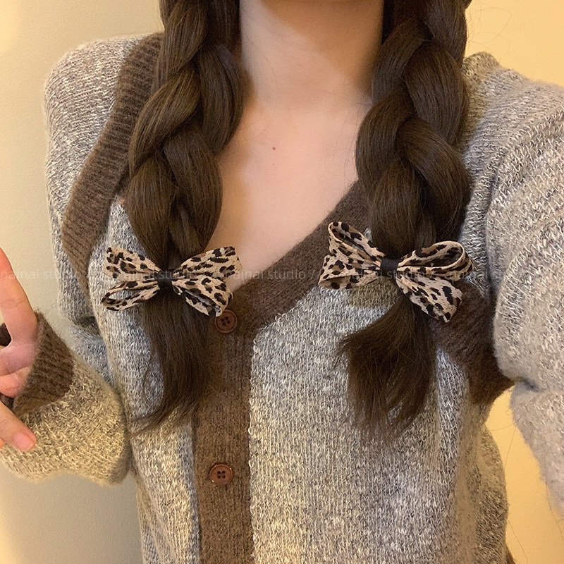 豹纹蝴蝶结发夹+发圈~2只装!小众高级感y2k千禧辣妹风侧边夹发绳