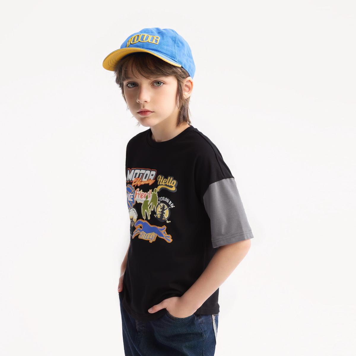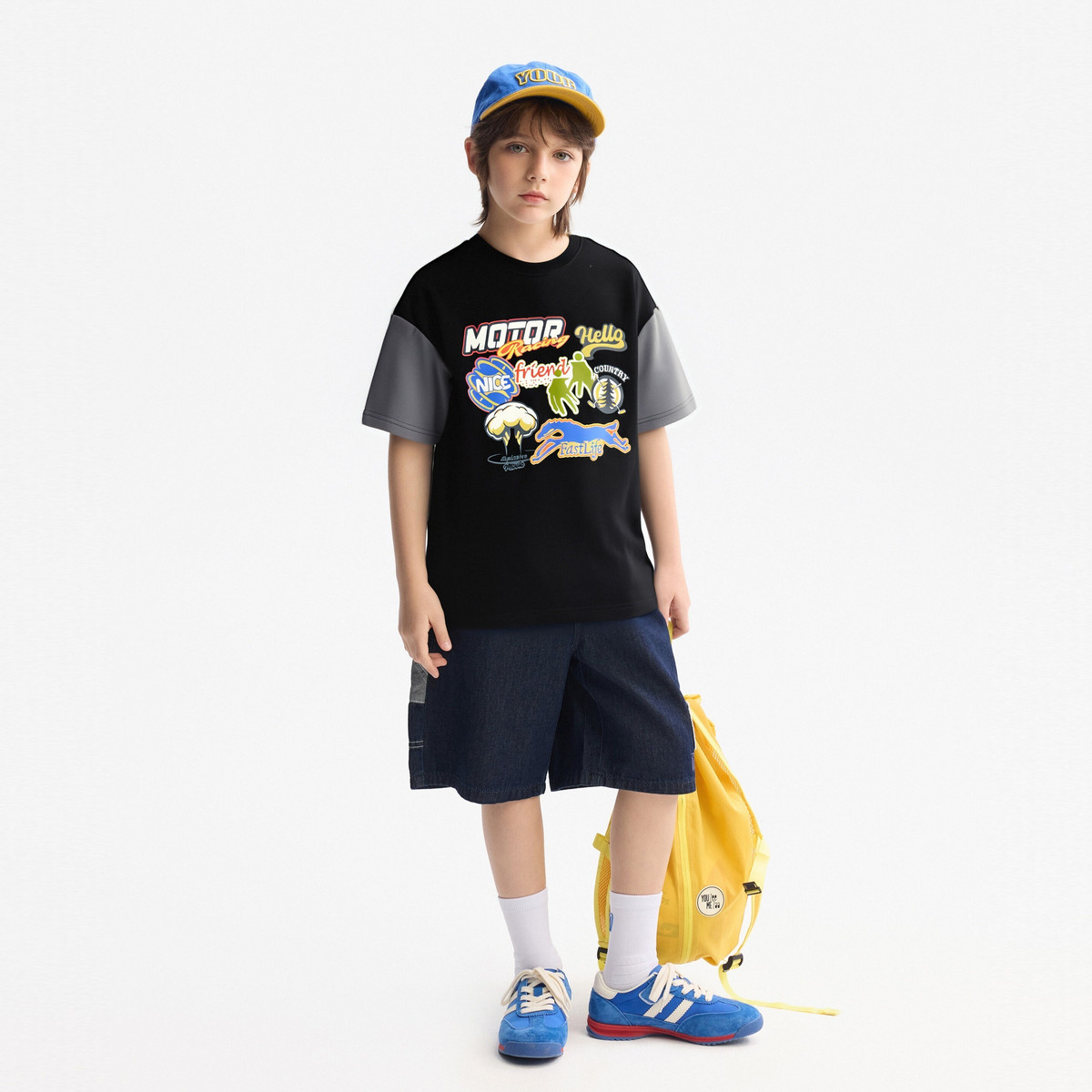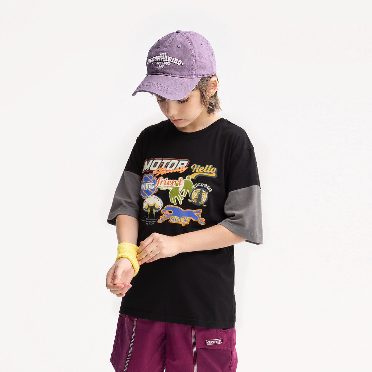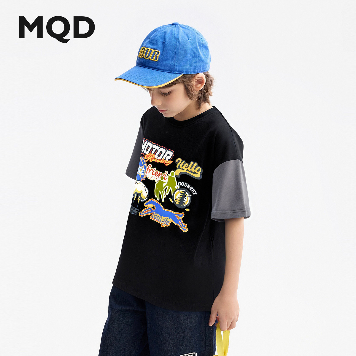 【吸湿速干】MQD童装男童短袖T恤夏装新款儿童黑色卡通上衣