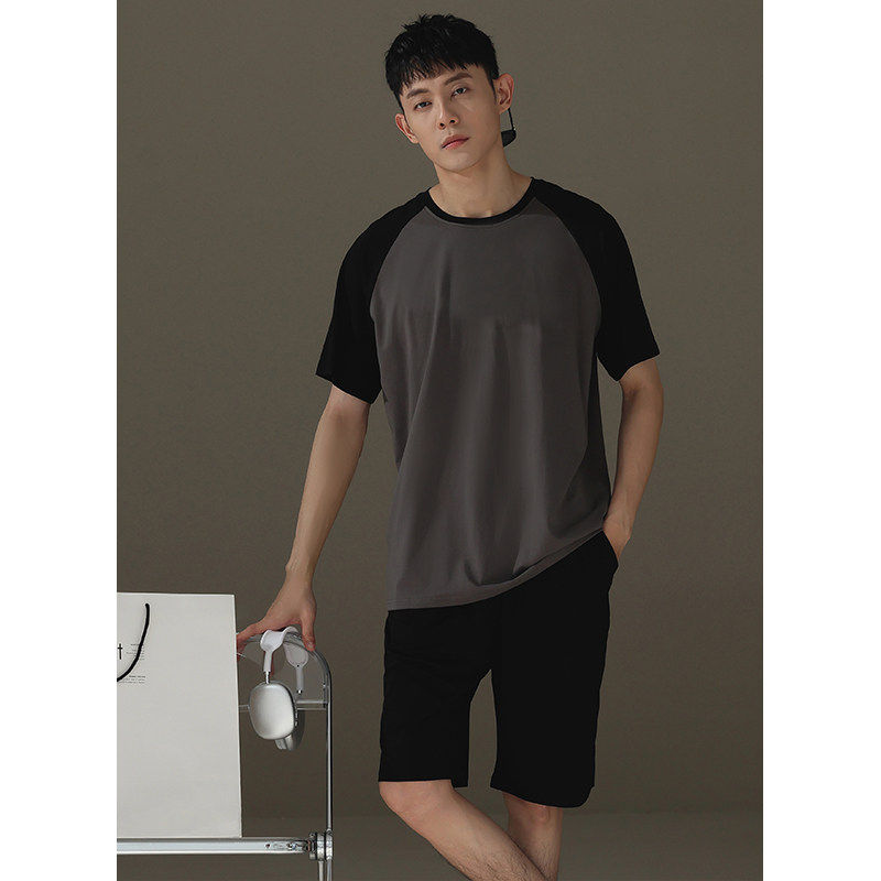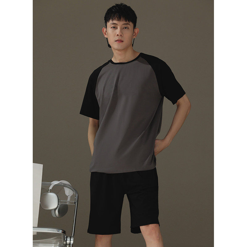 红豆夏天睡衣男士纯棉薄款短袖宽松休闲可外穿夏季男孩简约家居服