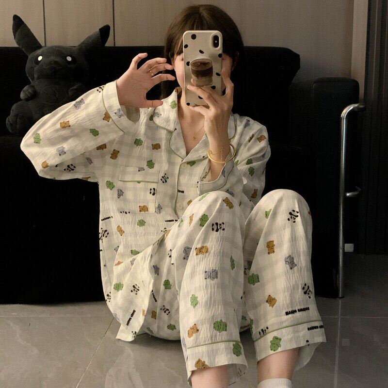 红豆卡通可爱纯棉睡衣女 春秋季长袖云朵棉家居服套装