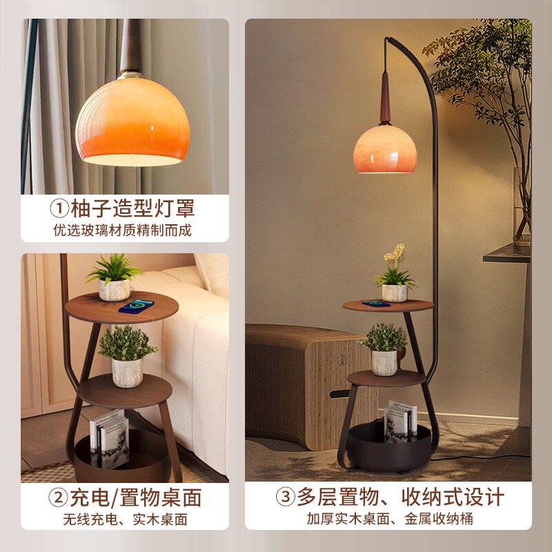 2025中古客厅落地灯氛围沙发旁边高级感床头置物架一体卧室台灯