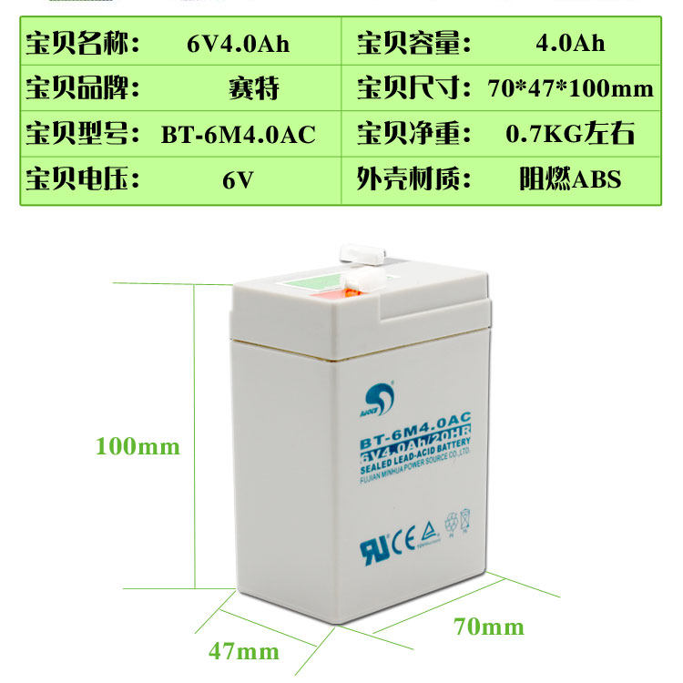 赛特BT-6M4.0AC电子秤6V4.0AH电瓶计价秤台秤六伏童车6V4AH蓄电池