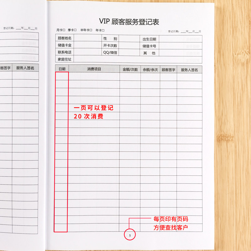 oleme顾客登记本美容院皮肤护理消费表会员卡档案客户资料信息表VIP贵宾储值卡美甲美睫服装店A4管理手册定制