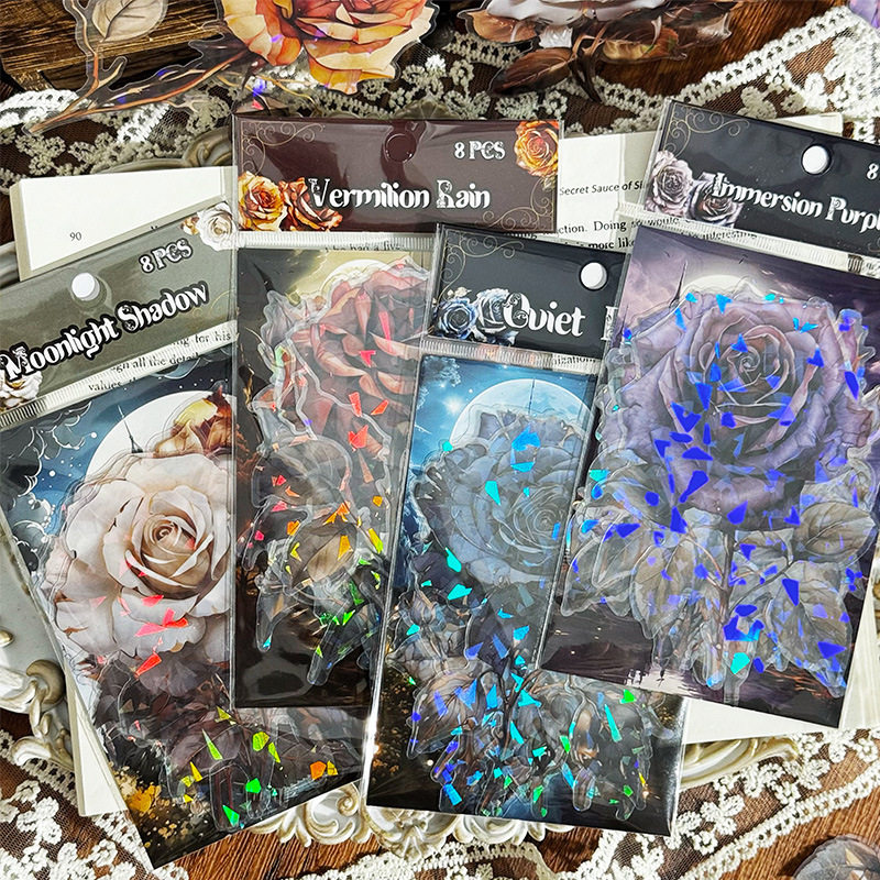 夜色瑰丽创意贴纸包手帐ins风儿童贴画透明pet镭射手账素材