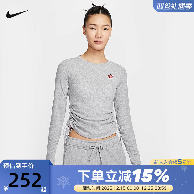 Nike耐克女子罗纹长袖短款上衣运动休闲刺绣卫衣套头衫HV8728-063