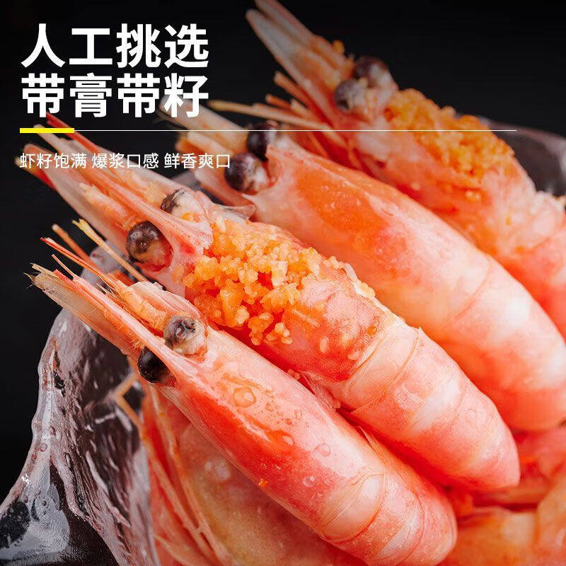 北极甜虾北极虾头籽北极熊腹籽冰虾带籽甜虾刺身即食熟冷冻元宝虾