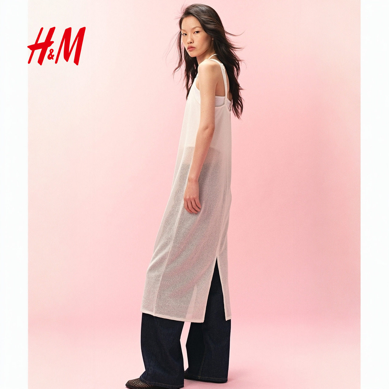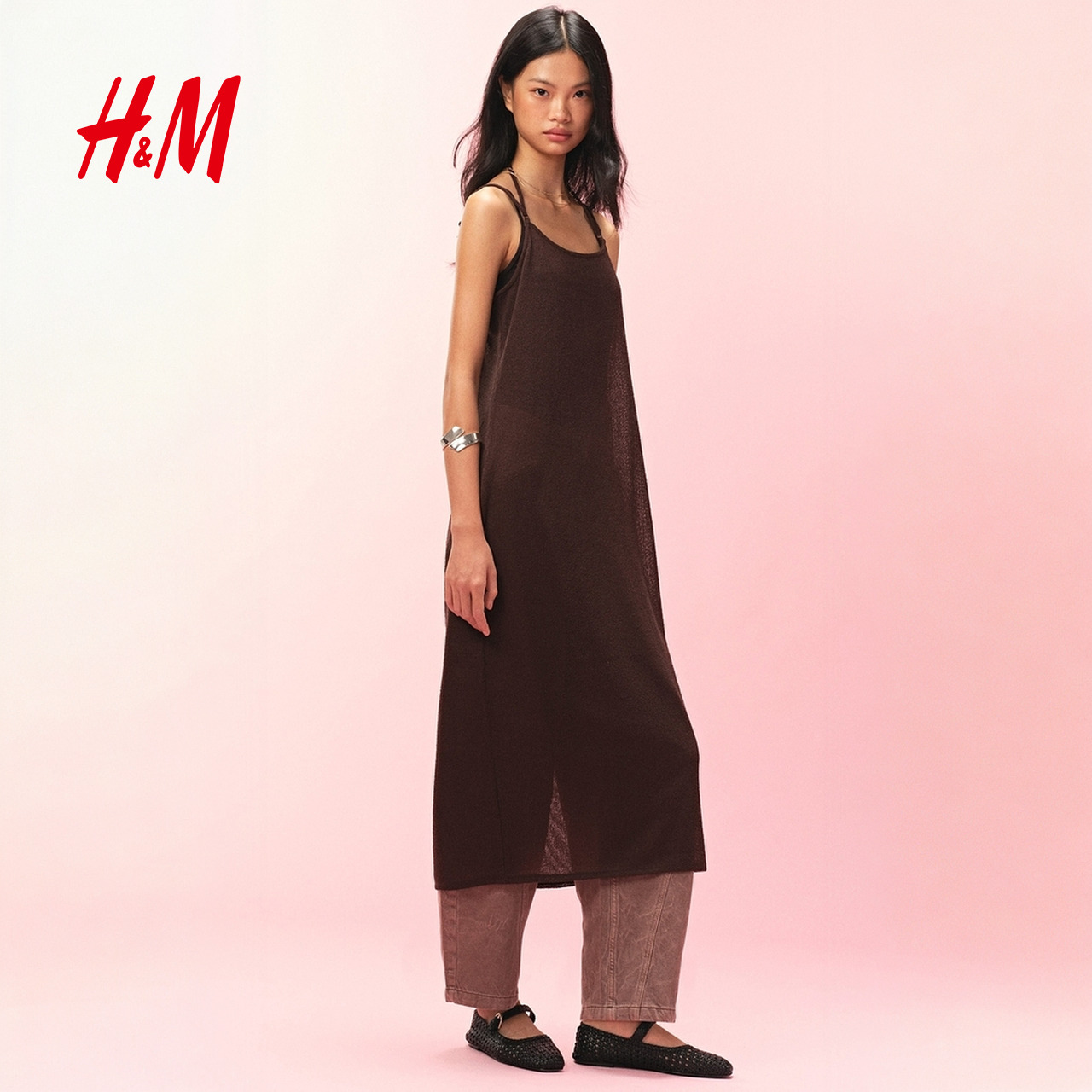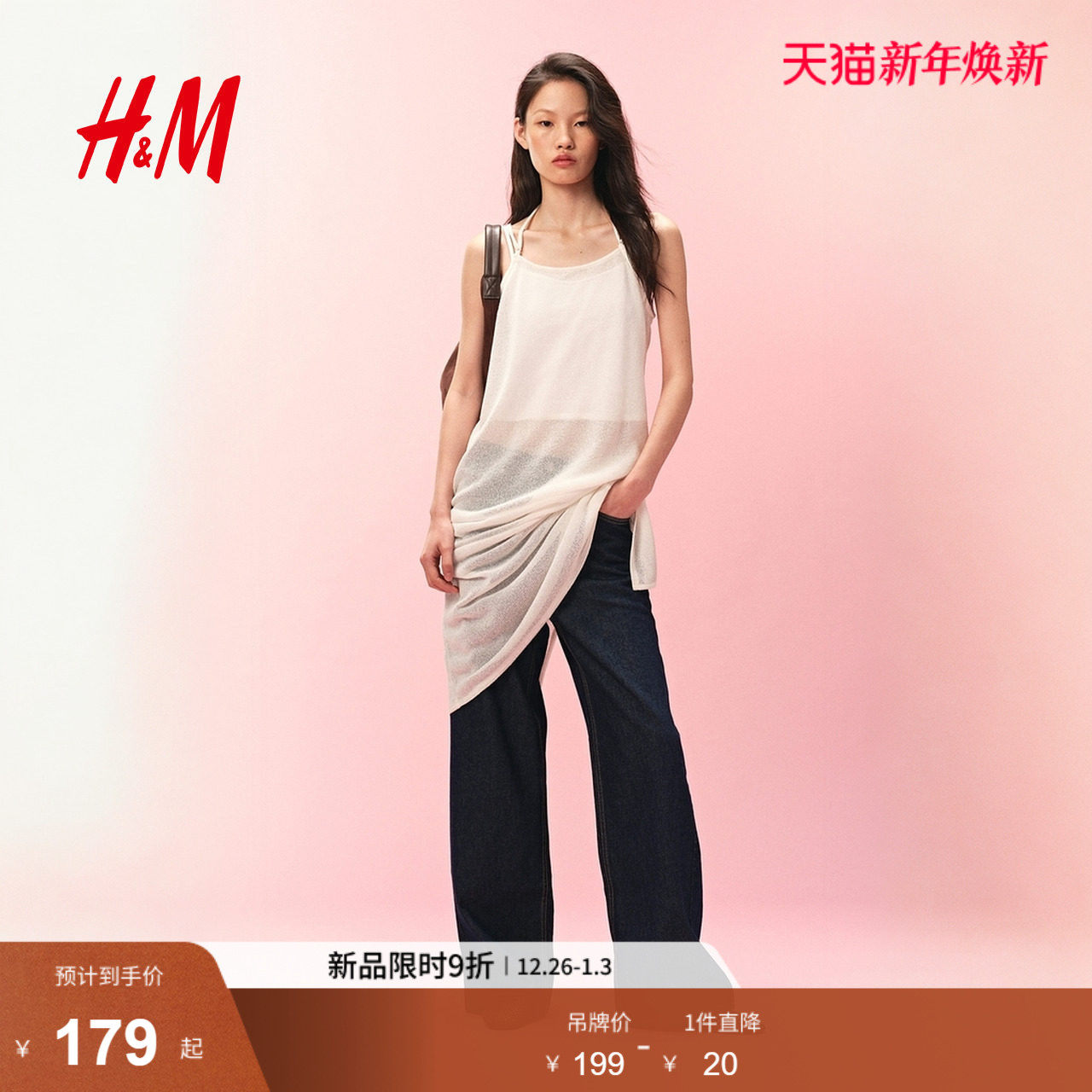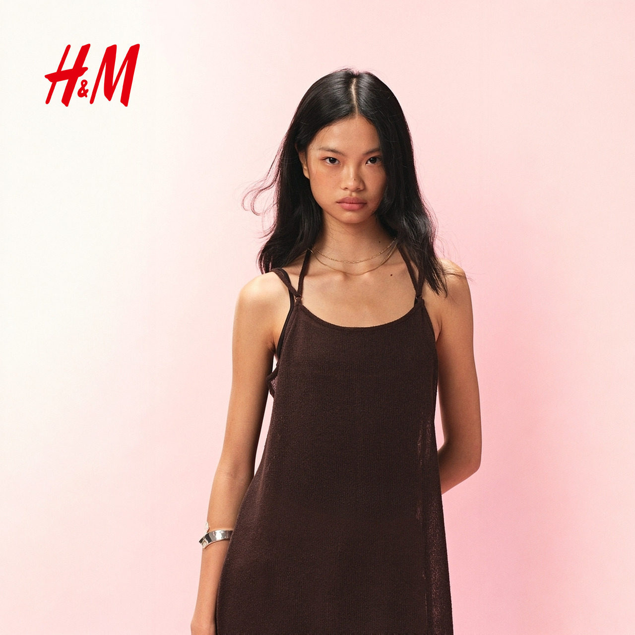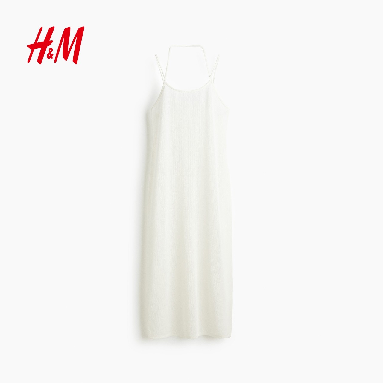 HM女装连衣裙2025年冬季新款挂脖式纹理感针织吊带连衣裙1309759
