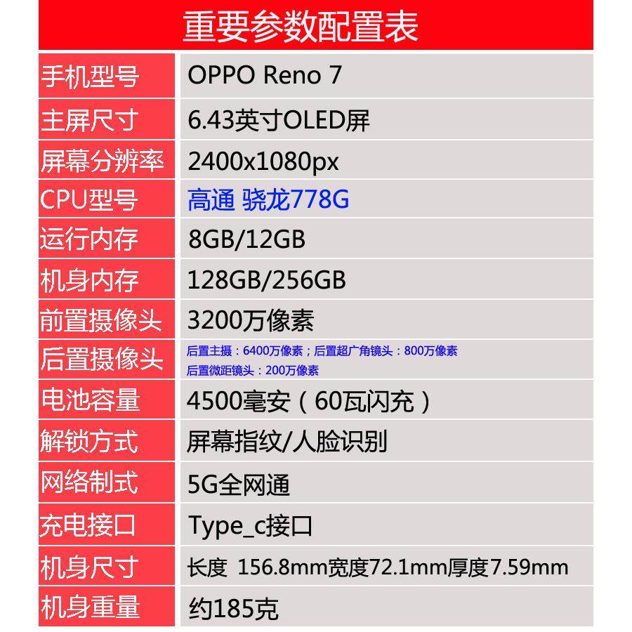 OPPO Reno7 骁龙778G处理器 6.43英寸高刷屏幕 支持NFC旗舰5G手机