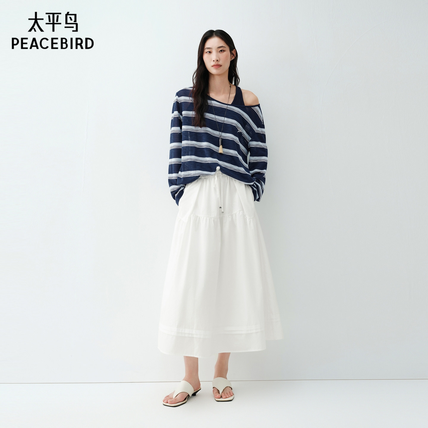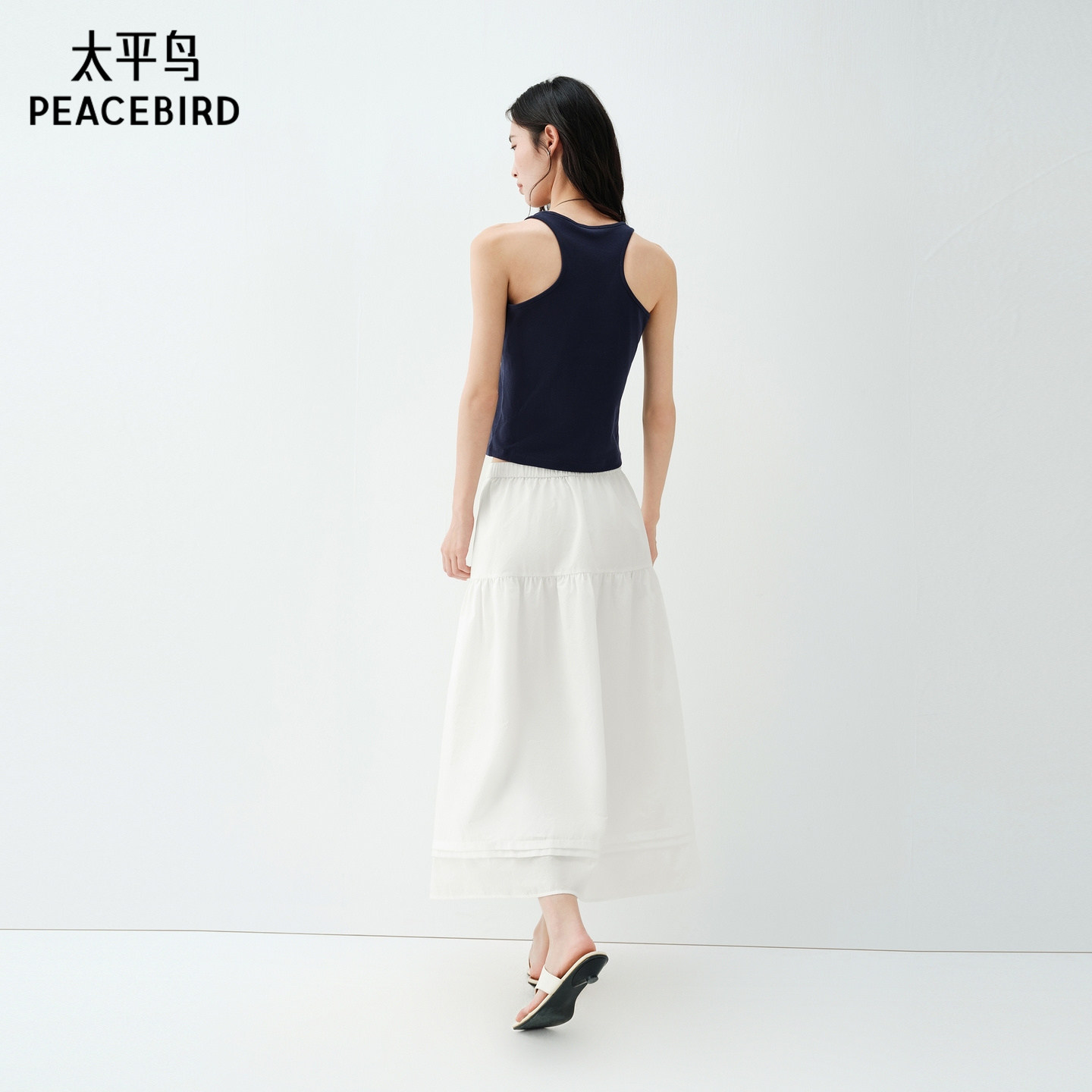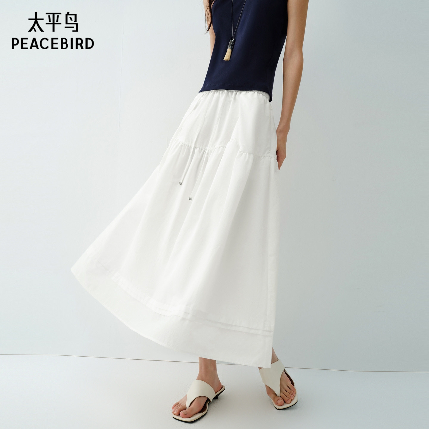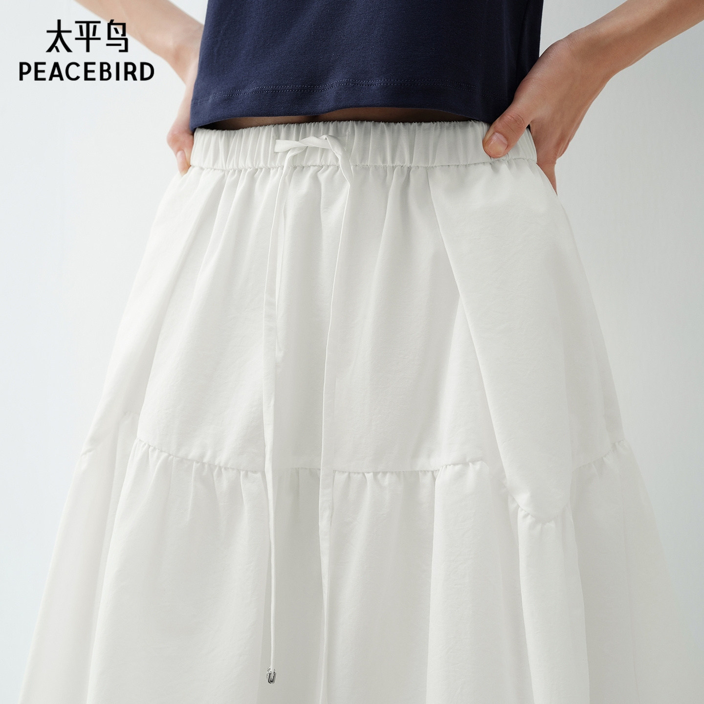 太平鸟蛋糕裙A字小白裙大裙摆半身裙中长裙白色女2026夏装新款