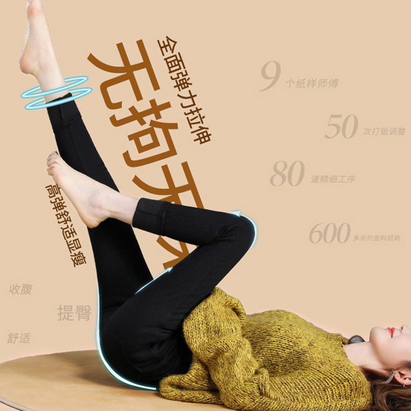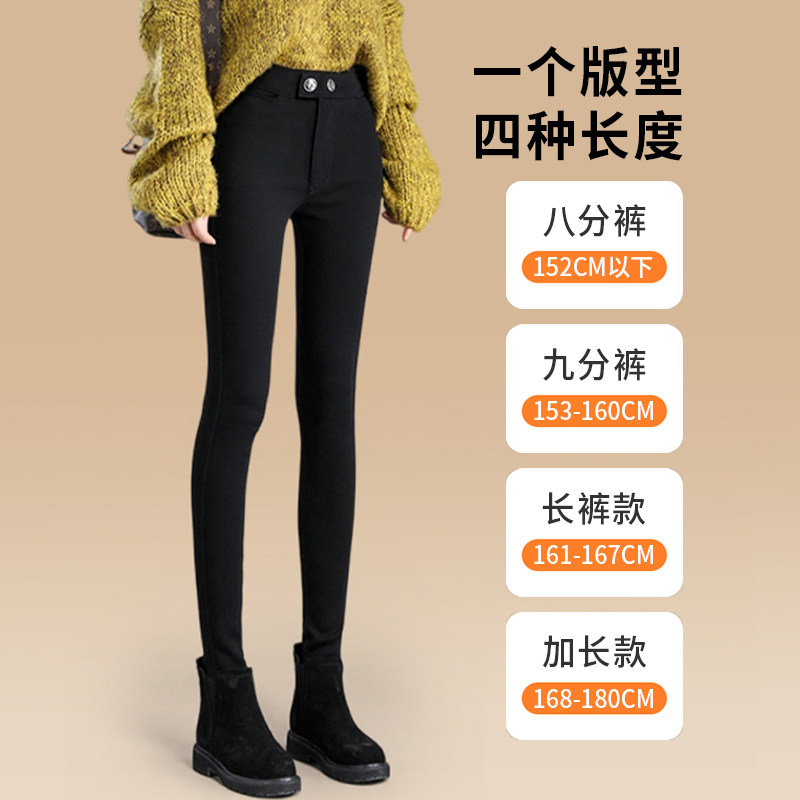 薄绒黑色打底裤女外穿2026新款高腰秋冬季加绒九分铅笔小脚小黑裤