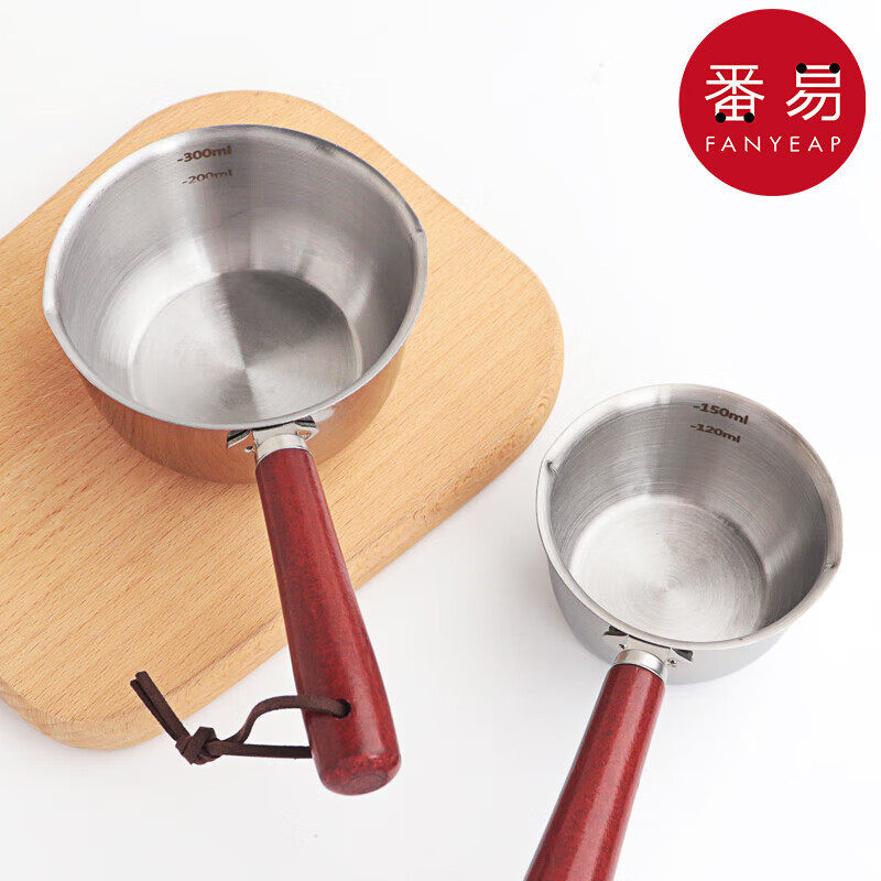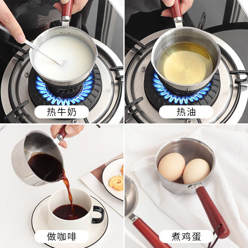 不锈钢胡桃木手柄平底锅宝宝辅食锅热油锅食品级多功能汤锅炒菜锅