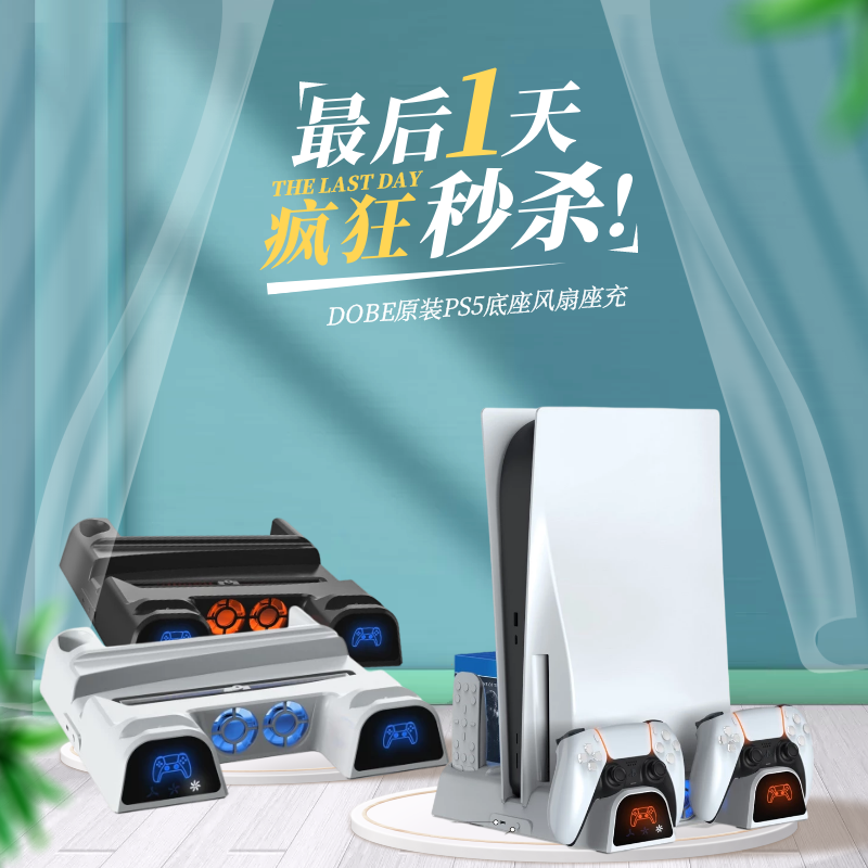 PS5散热底座手柄座充光驱版主机散热带风扇充电支架无线充电配件