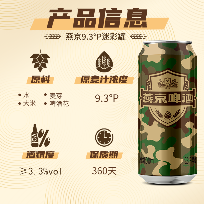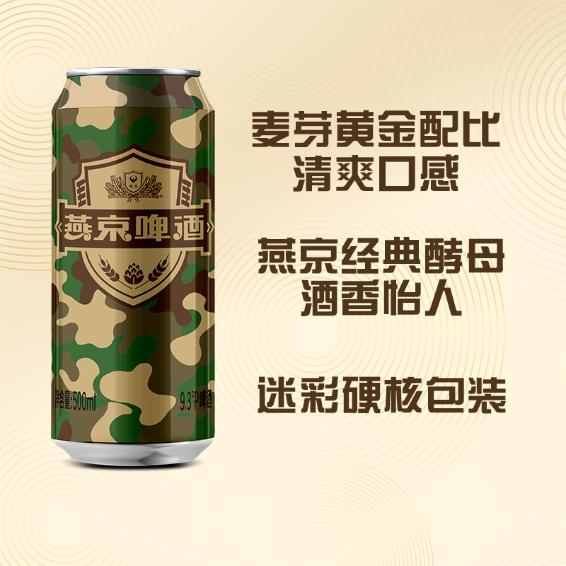 【燕京啤酒】迷彩罐9.3度啤酒500ml*12 听装军旅风迷彩包装