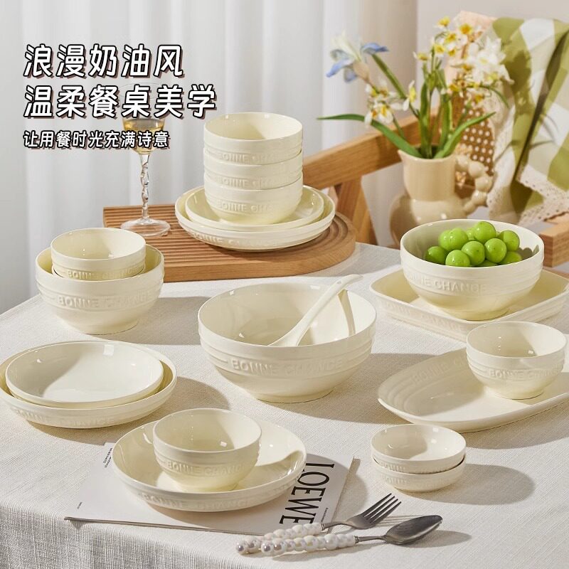 高级感碗碟套装家用2025新款高颜值餐具陶瓷碗盘子乔迁碗筷碗具