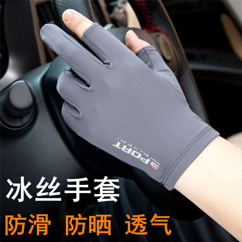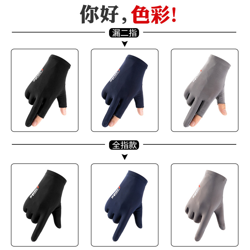 防晒手套男夏季薄款冰丝开车骑行钓鱼路亚防滑外卖快递员半指二指