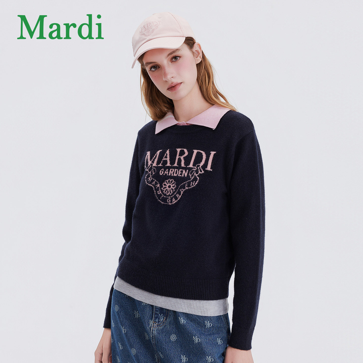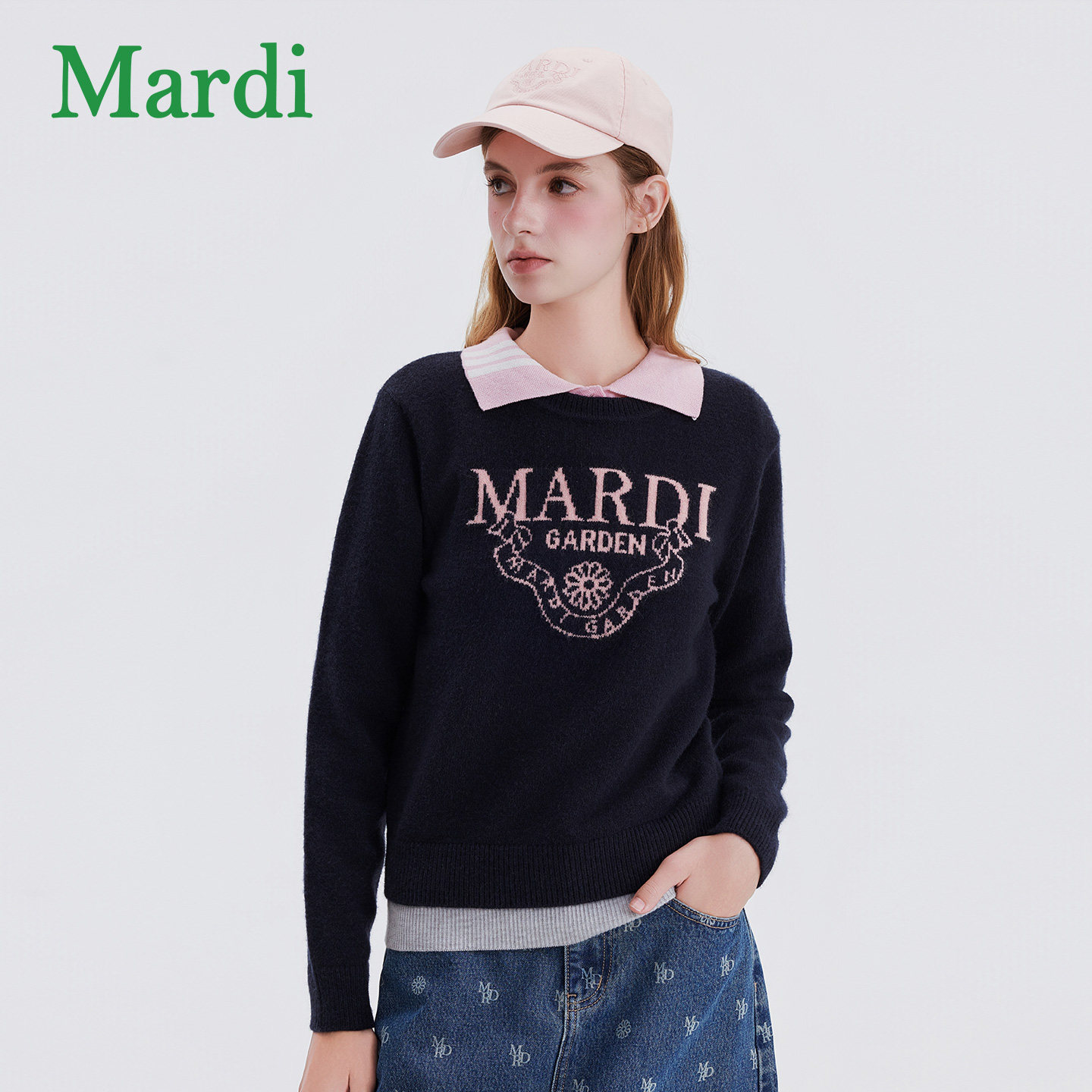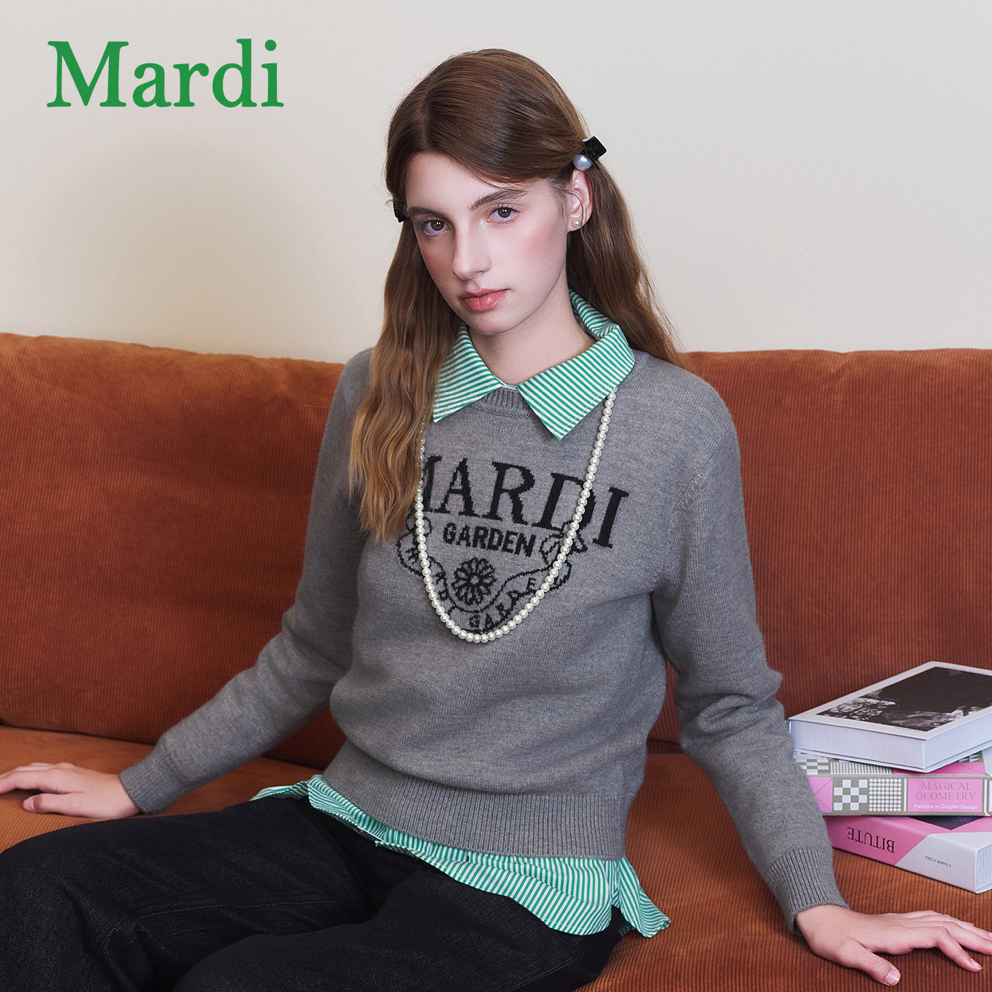 MARDI小雏菊毛衣女针织衫上衣新款休闲内搭套头长袖毛衣灰色少女