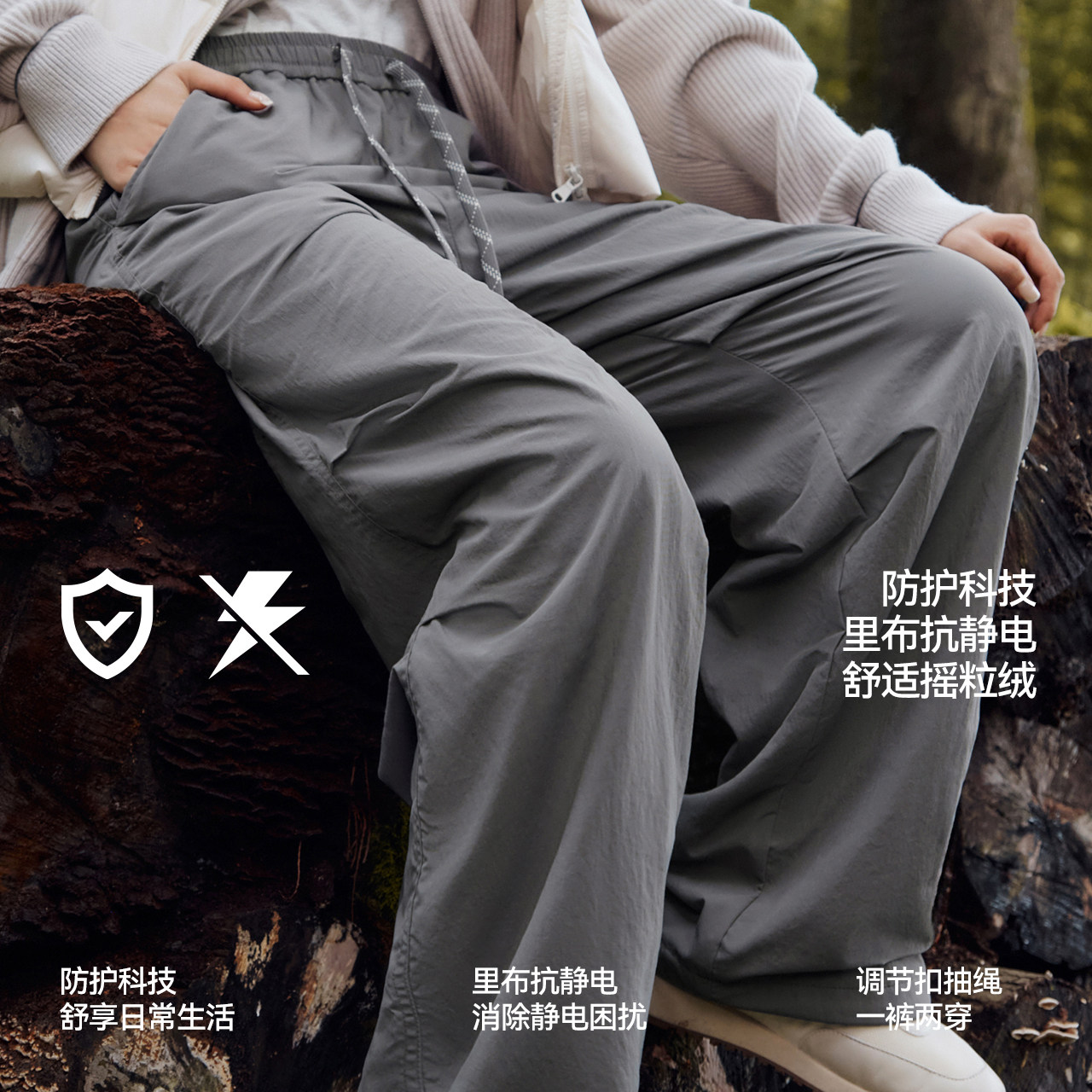 裤脚内抽绳,一裤两穿 三防+抗静电摇粒绒
