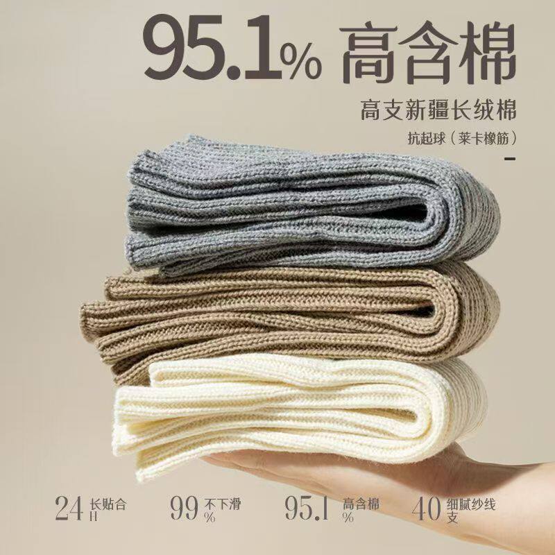 棉伙棉伴纯棉中筒袜抗起球男女纯色透气舒适耐穿日常百搭