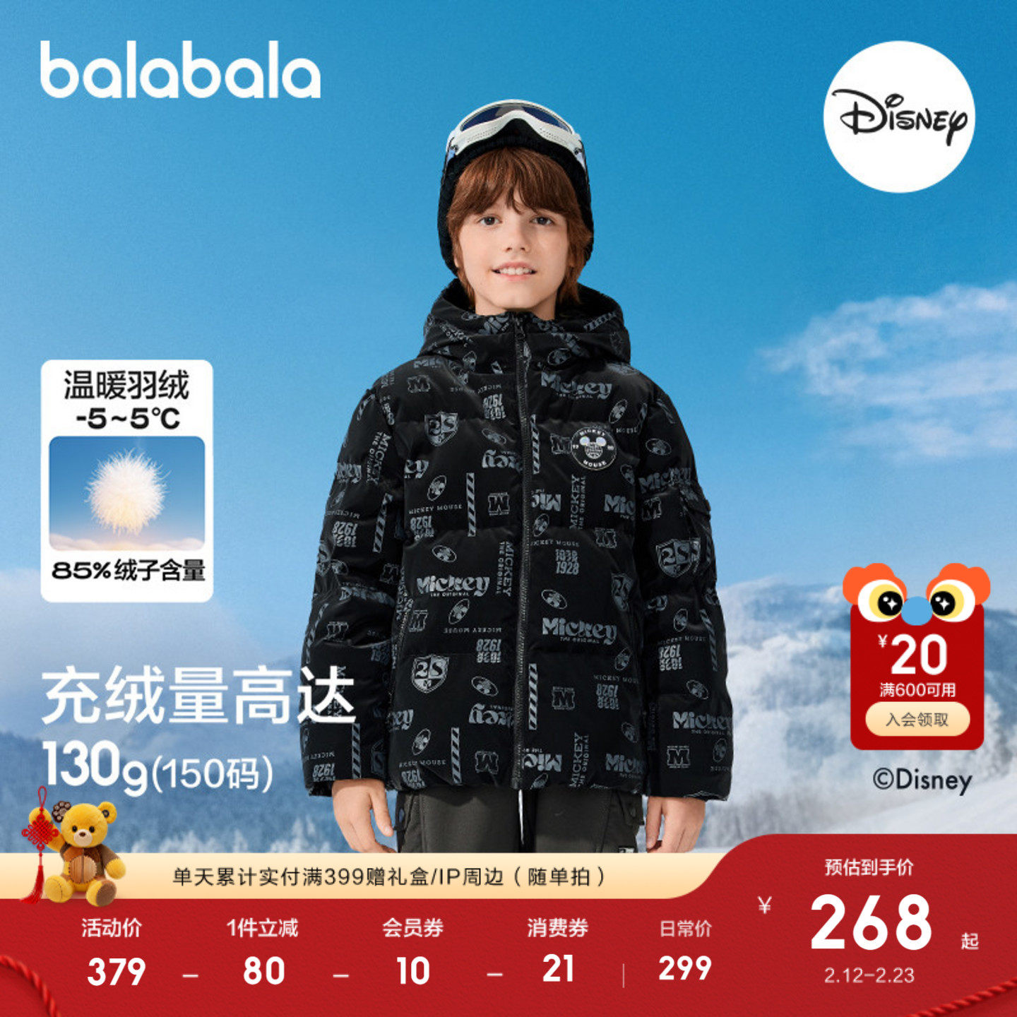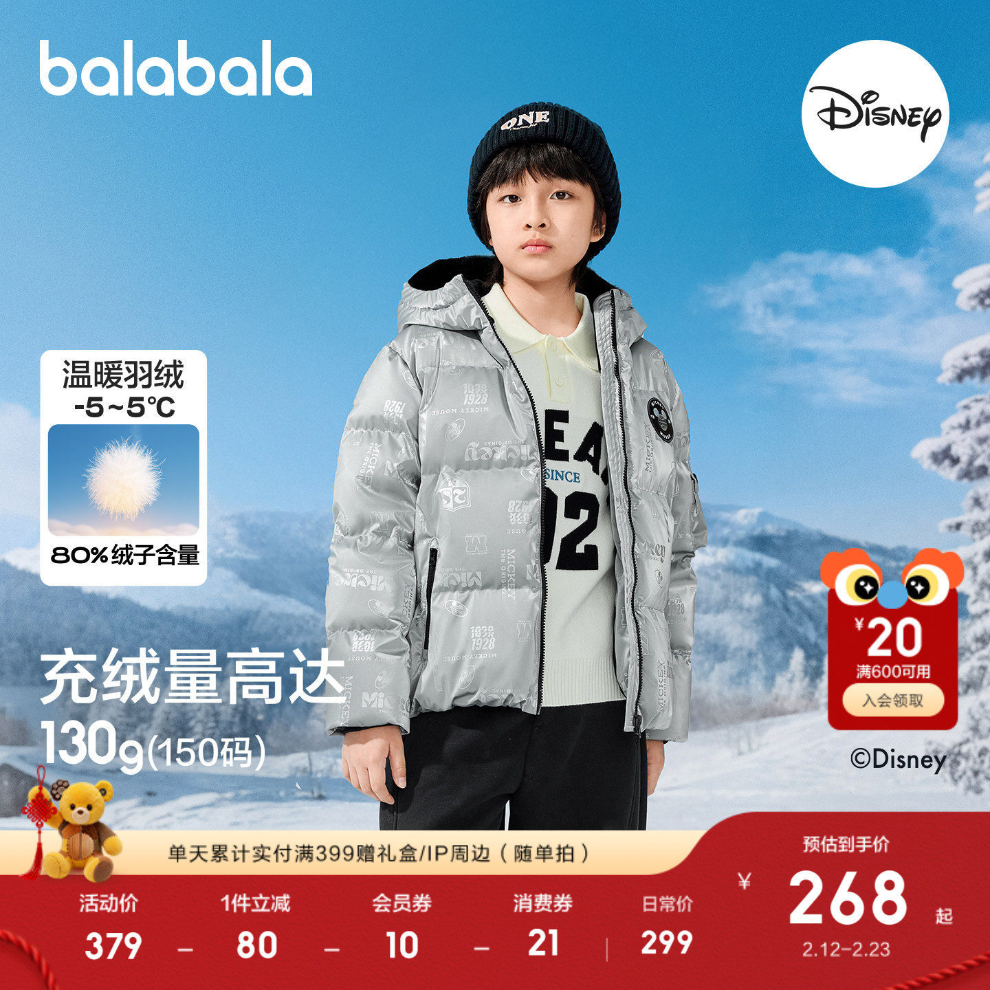迪士尼IP联名,温暖连帽羽绒服