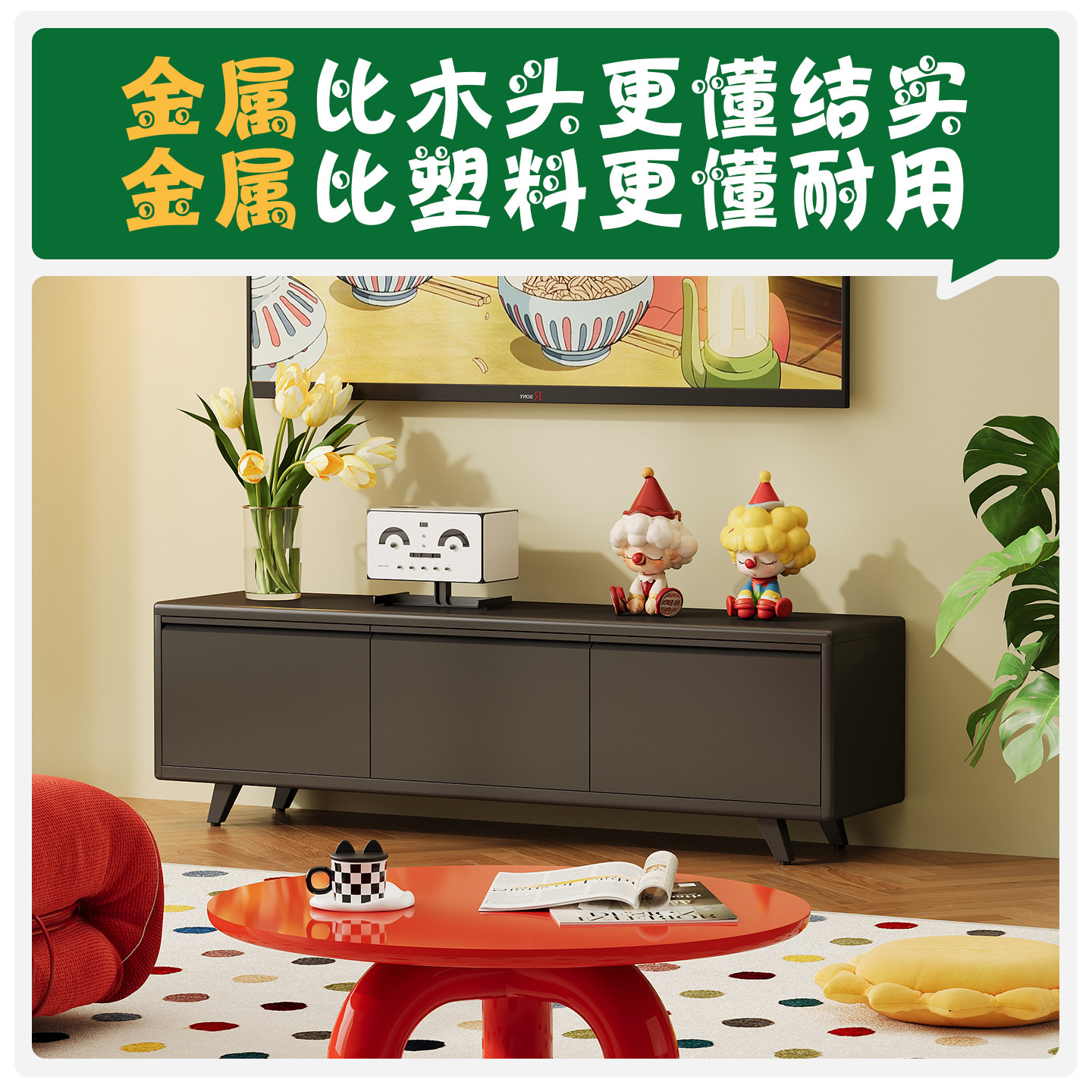 高级铁艺电视柜中古风客厅家用小户型卧室落地收纳储物柜立柜边柜