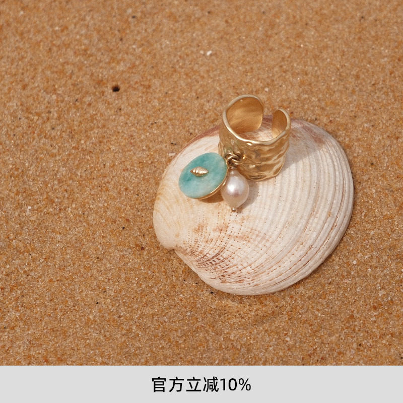 李沁同款lost in echo度假风个性小众珍珠手工挂坠开口戒指