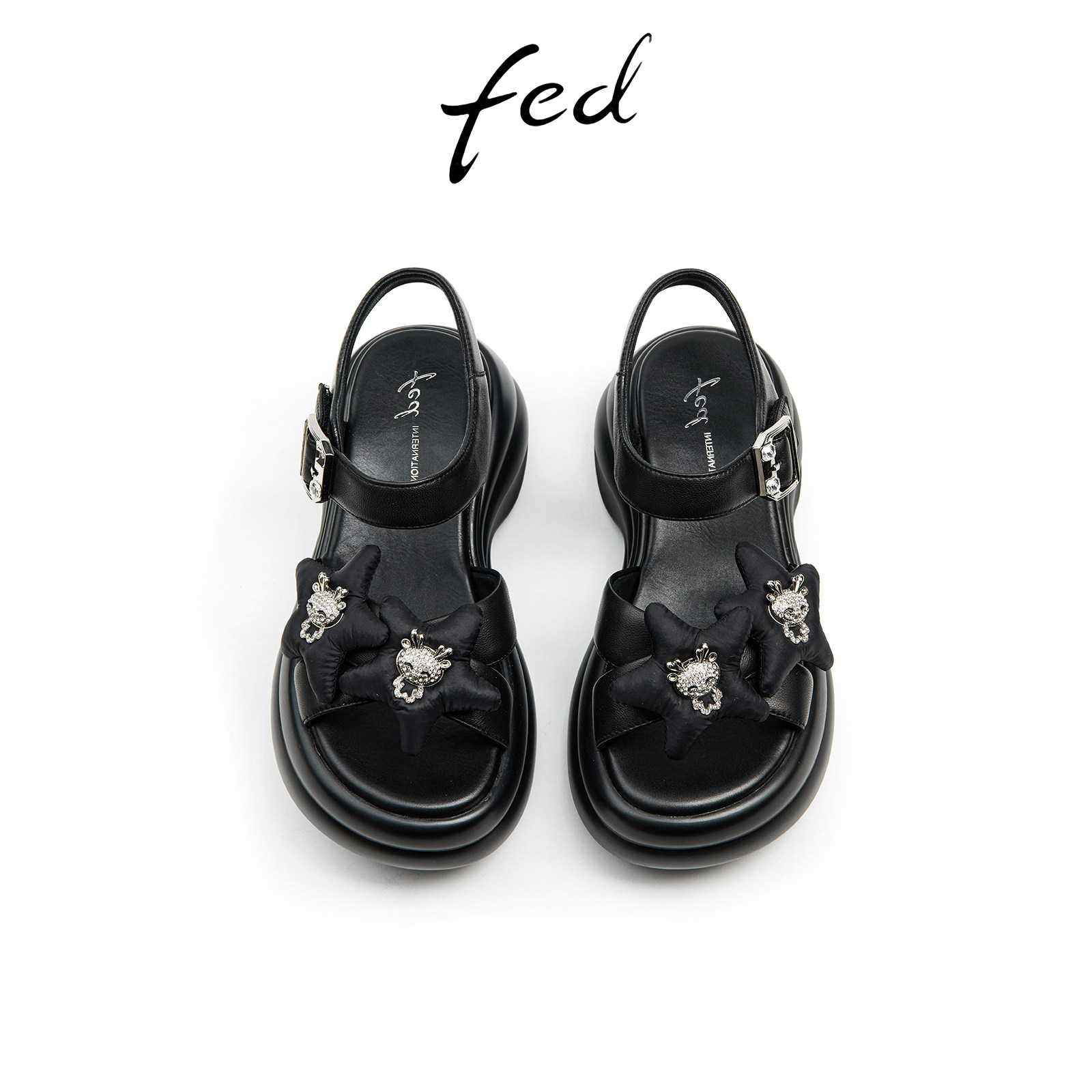 fed休闲厚底凉鞋夏季新款女鞋一字带凉鞋沙滩凉鞋女款D0428-YA663