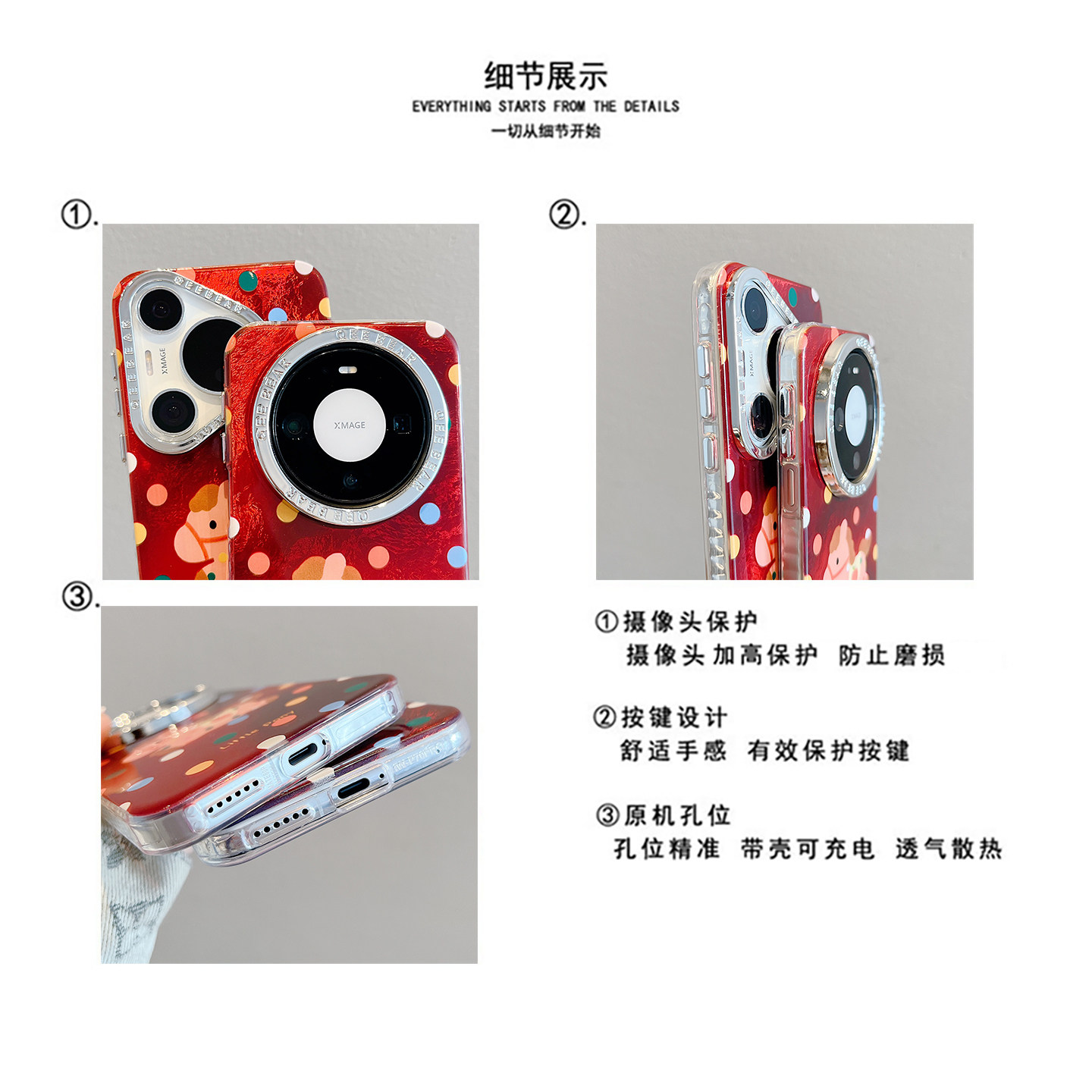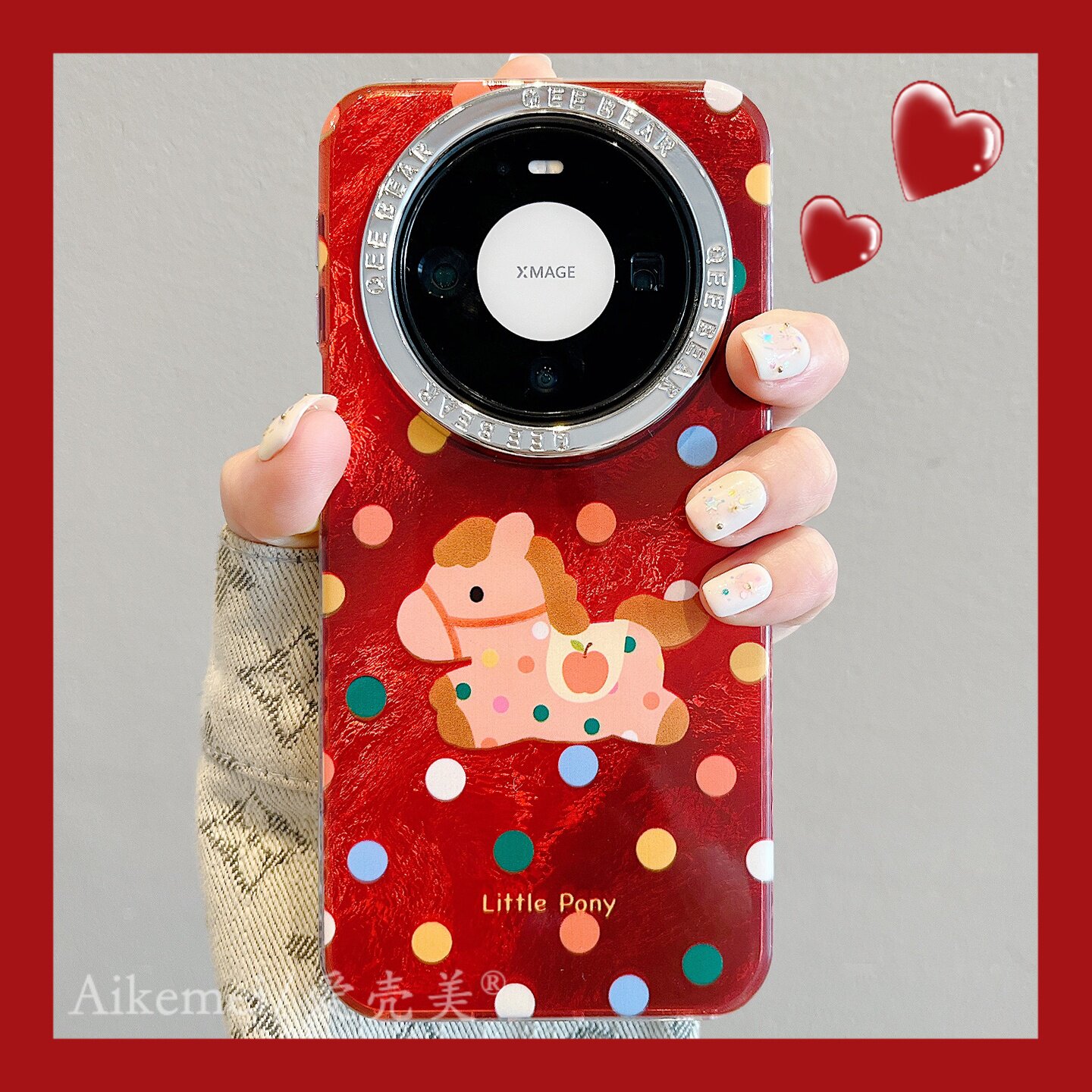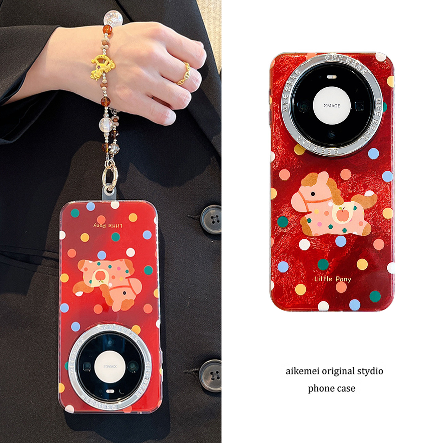 适用华为mate80promax手机壳红色锡纸纹彩色波点小马mate70pro链条挂绳MT605040pro电镀镜框pura80pro+防摔女
