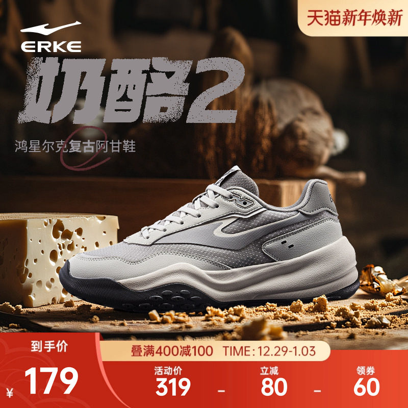 鸿星尔克奶酪2运动鞋男士休闲鞋秋冬复古网面透气潮流阿甘鞋男鞋