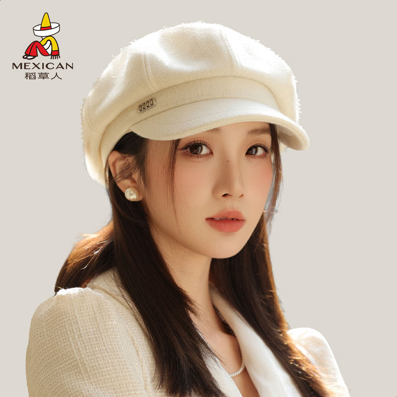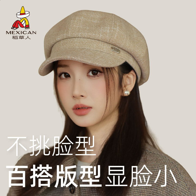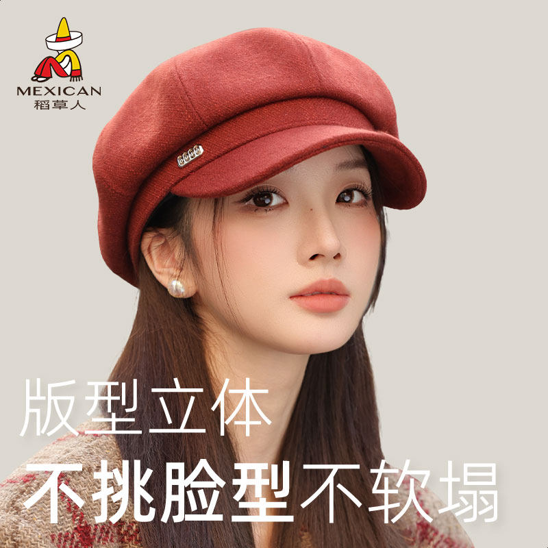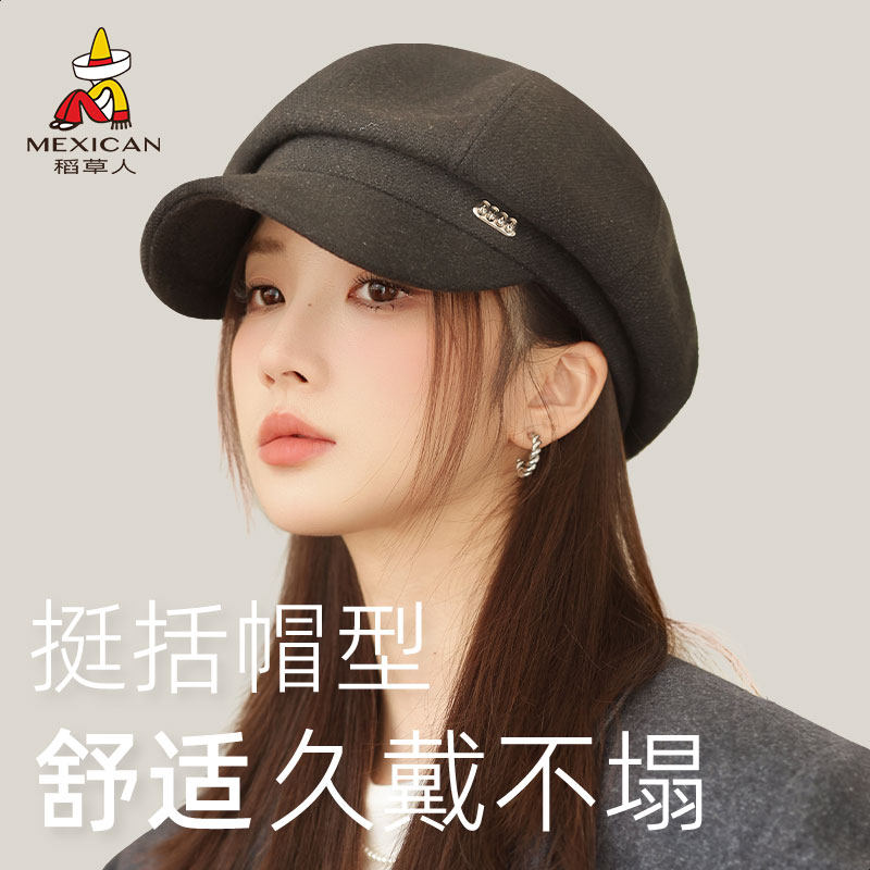 稻草人秋冬大帽檐画家帽时尚洋气八角贝雷帽显脸小复古宽檐报童帽