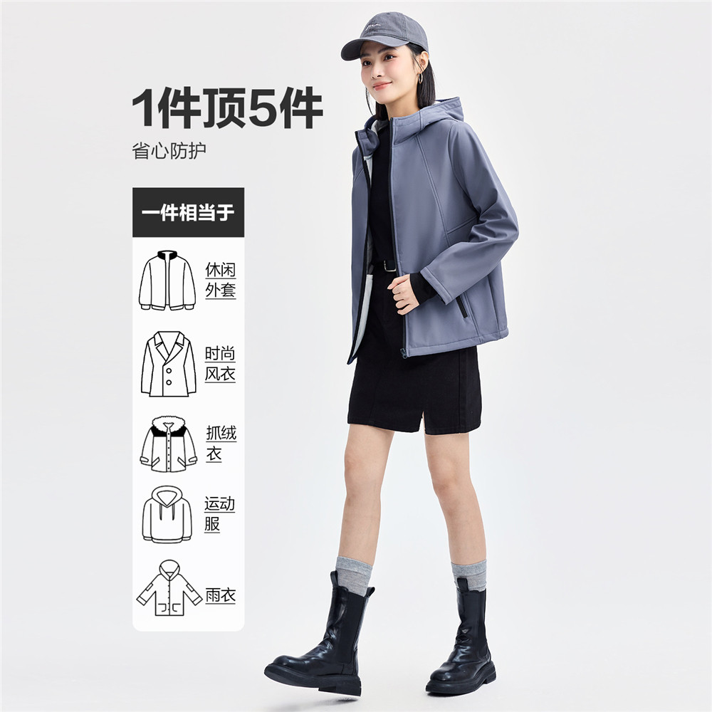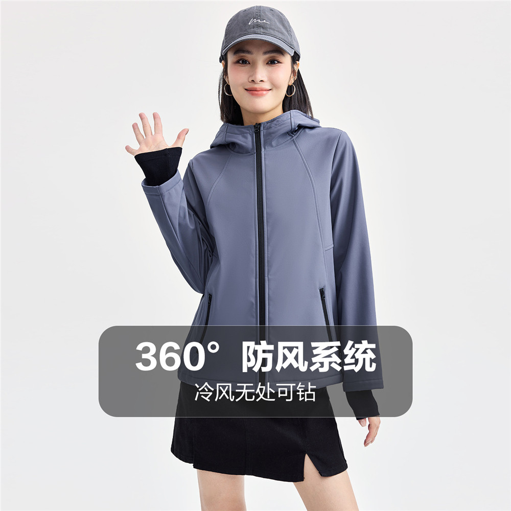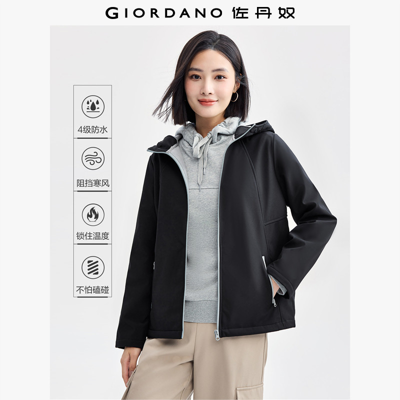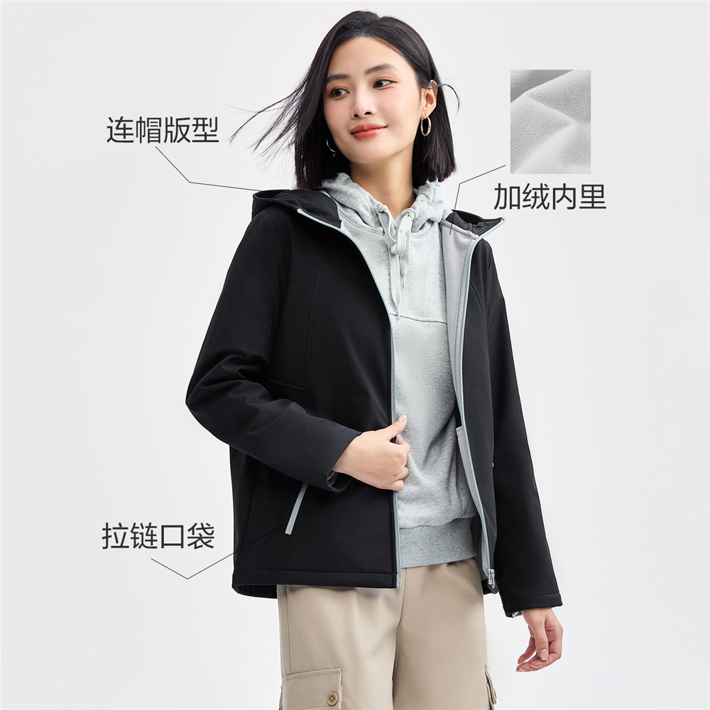 佐丹奴软壳外套女新款户外休闲多巴胺防风连帽短款夹克女13374846