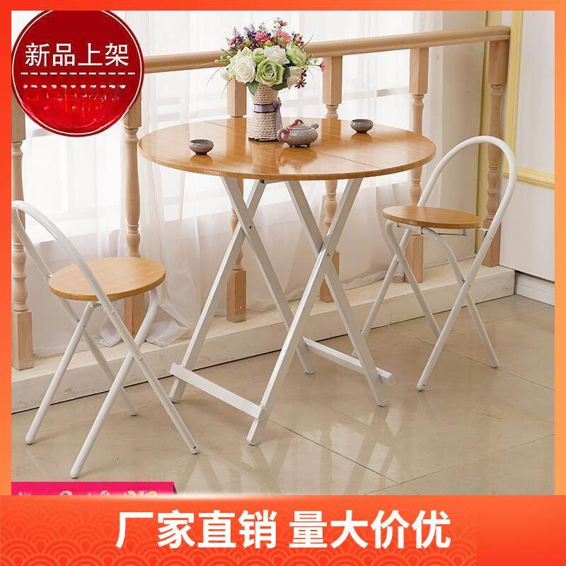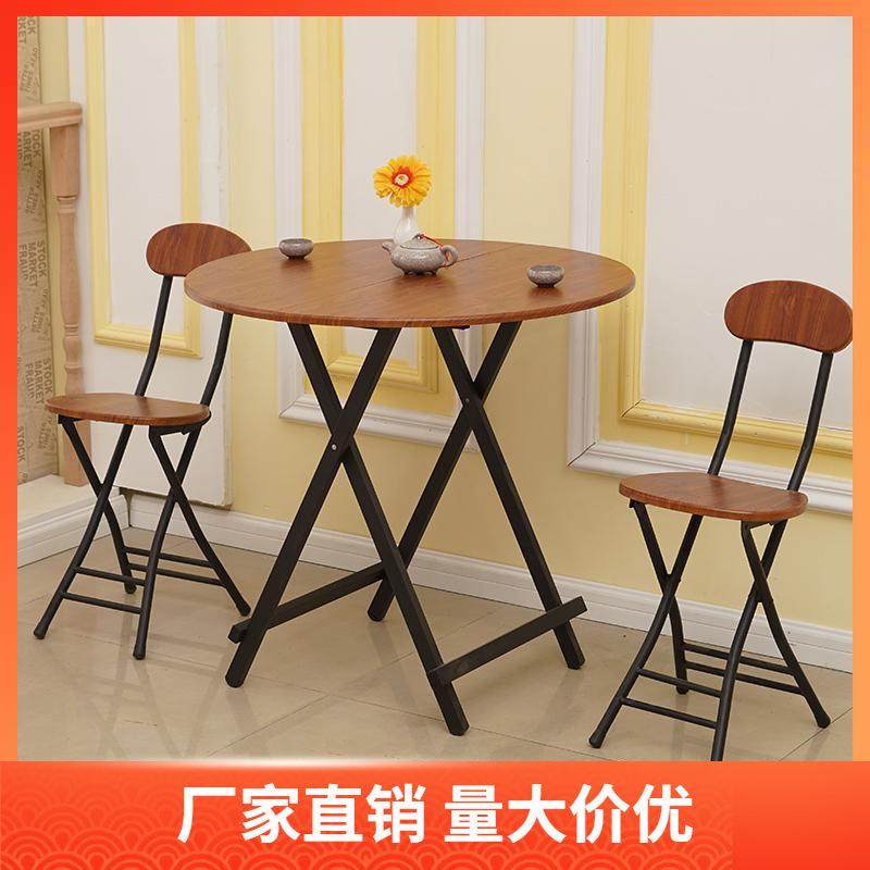 圆桌折叠家用折叠桌便携易吃饭桌子约欧式小户型圆形实木餐桌