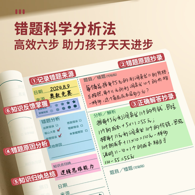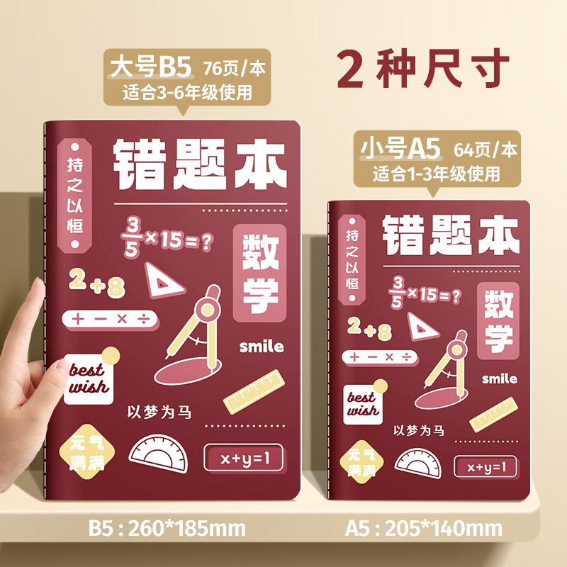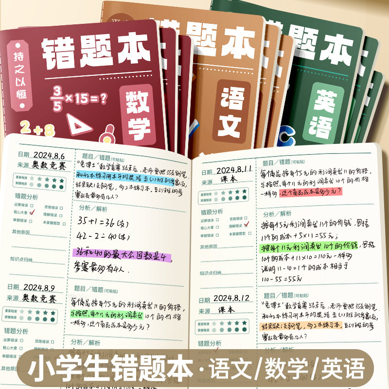 错题本小学生专用一二年级纠错本三年级四五六语文英语数学改错本初中生错题集订正整理本笔记本开学必备文具