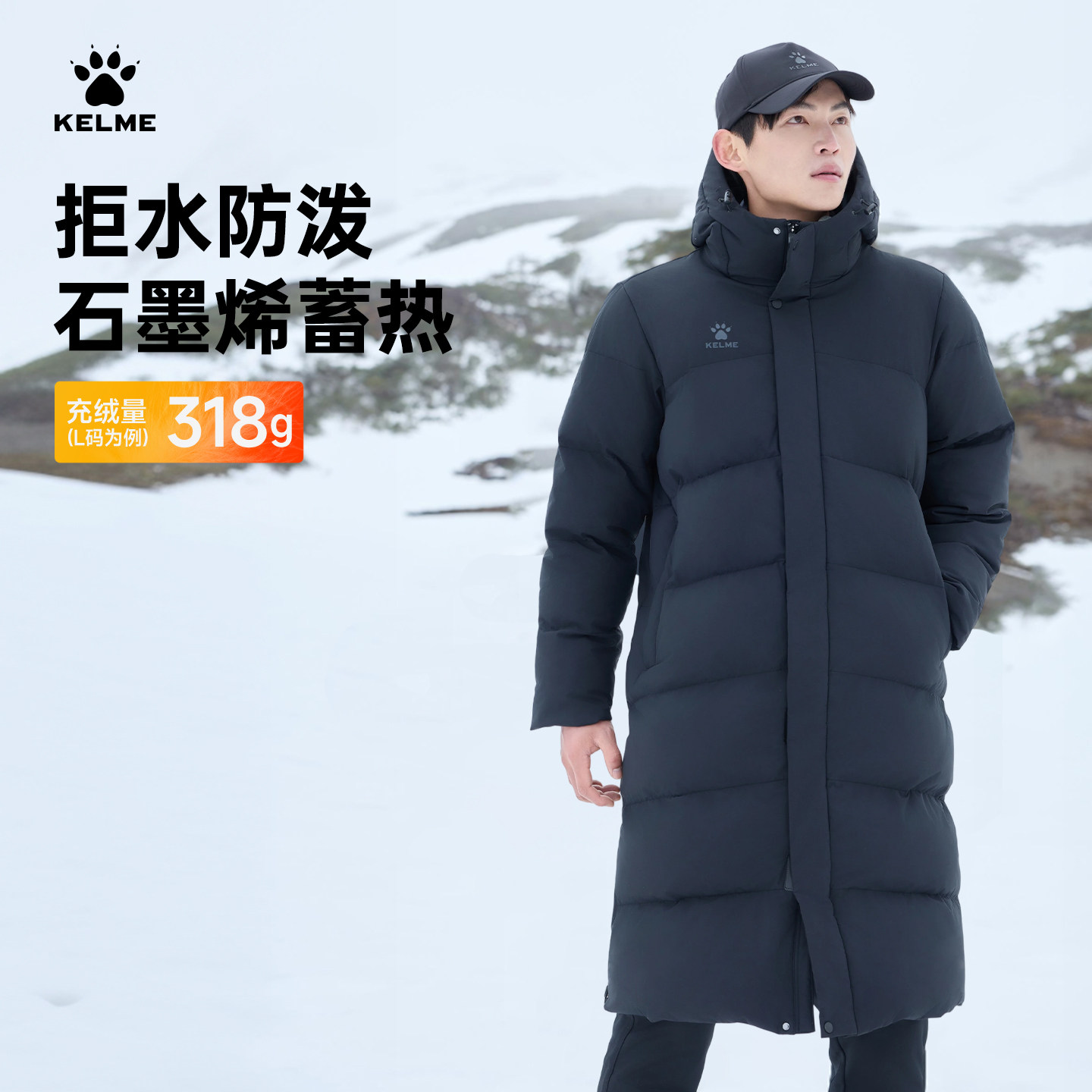KELME卡尔美长款羽绒服男2025冬季新款足球运动训练保暖大衣外套