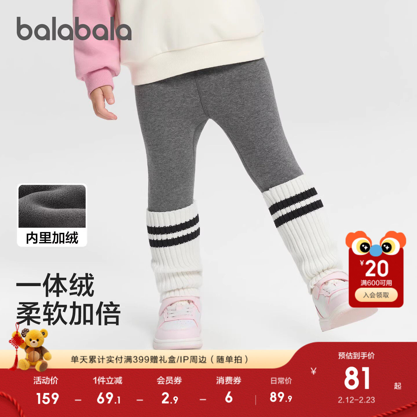 【balaOne】巴拉巴拉童装儿童加绒打底裤子女童2025秋冬新款拼接