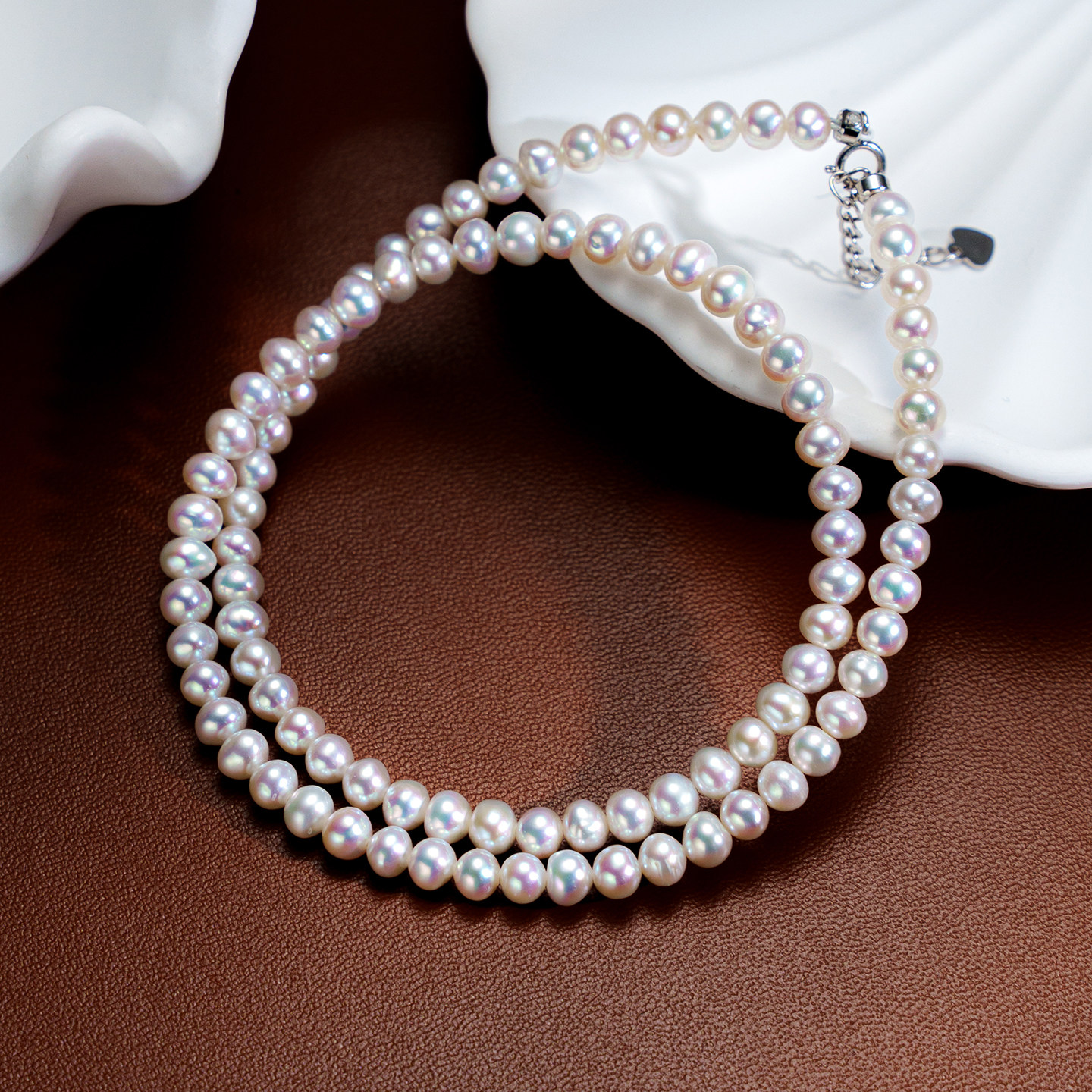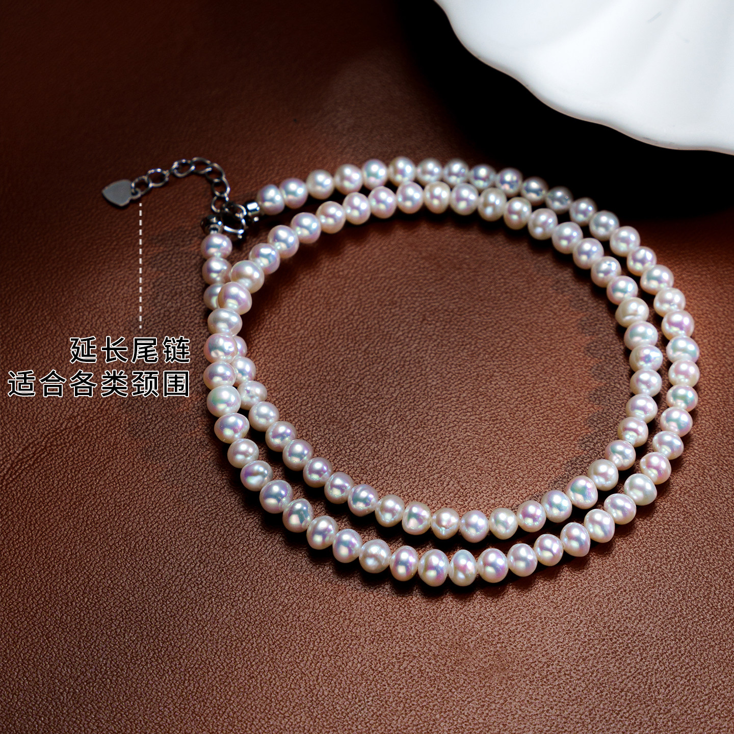 淡水珍珠项链小米珠锁骨链日常配饰925银强光颈链正圆珠宝
