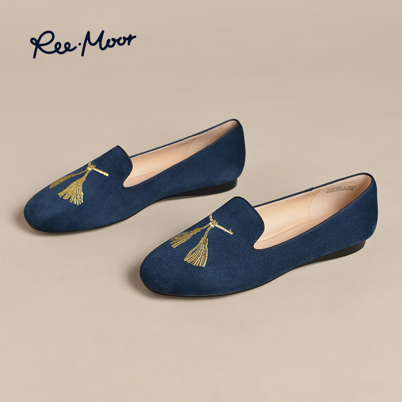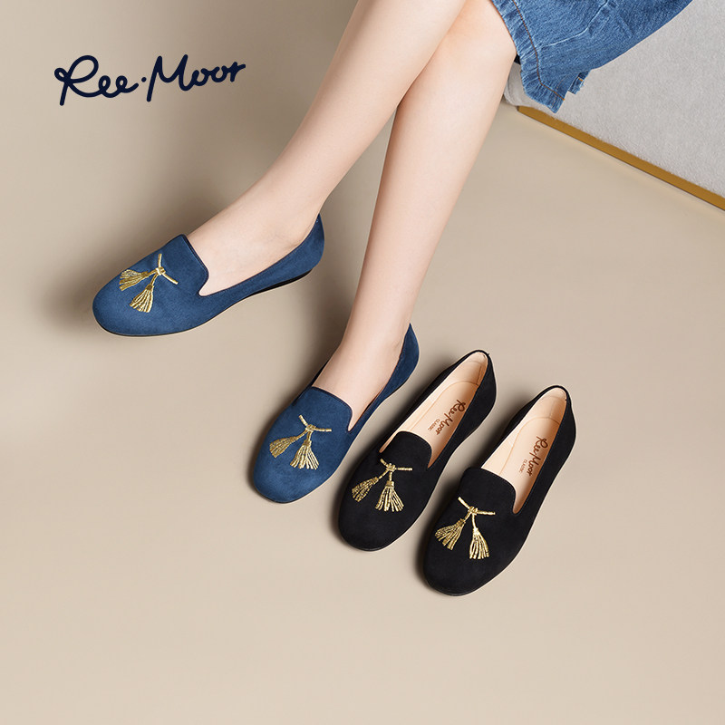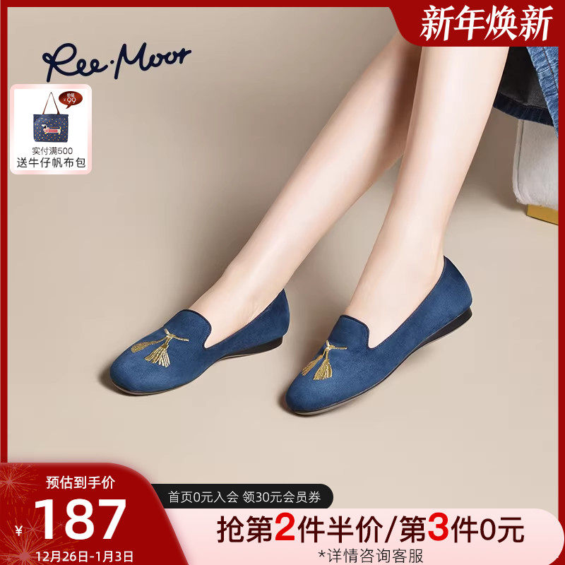 REEMOOR睿慕25新款秋季圆头乐福鞋软底豆豆鞋一脚蹬通勤平底鞋女