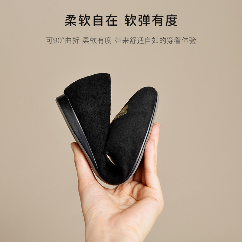 董洁同款真美诗自由之歌柔软水洗牛皮小皮鞋粗跟乐福鞋女男女同款
