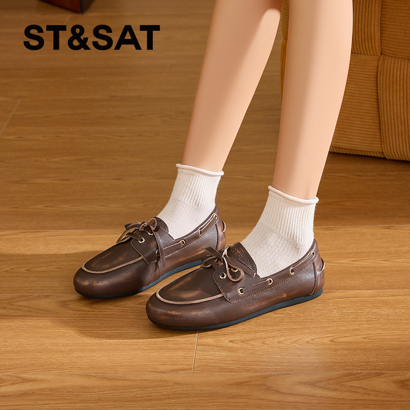 星期六乐福鞋女2025秋季新款女款爆款女鞋复古皮鞋豆豆小皮鞋单鞋